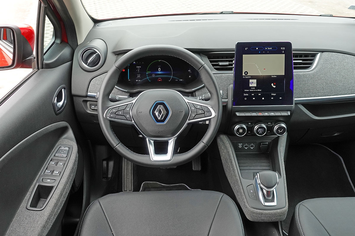 Zoe jest doskonałym przykładem imponującego postępu, jaki dokonuje się w konstruowaniu pojazdów elektrycznych. Gdy model ten pojawił się na rynku, stosowano w nim baterie o pojemności 22 kWh, które ważyły 290 kg, pozwalając na realny zasięg na poziomie 125–150 km. W 2017 roku pojawił się wariant z bateriami o pojemności 41 kWh o zasięgu 280–300 km. Słabsza wersja nadal była oferowana. Obecny model ma już baterie o pojemności 52 kWh, masie 326 kg i realny zasięg 370 km. I to korzystając z pojazdu w sposób zupełnie normalny, nie rezygnując z klimatyzacji. Zmiana pojemności baterii z 41 kWh na 52 kWh nie wymagała zastosowania innych baterii i upakowania większej liczby cel. Wystarczyło jedynie zmienić oprogramowanie. Aby naładować małego Zoe poprzez klasyczne gniazdko, potrzebujemy ponad dobę. Dlatego rozsądniejszy wydaje się montaż pod biurem lub w domu ładowarki 7,4 kW, dzięki czemu czas ładowania skróci się do ośmiu i pół godziny. Francuski elektryk możemy też ładować prądem stałym 50 kW. Wówczas do pełnego naładowania potrzebujemy godzinę.