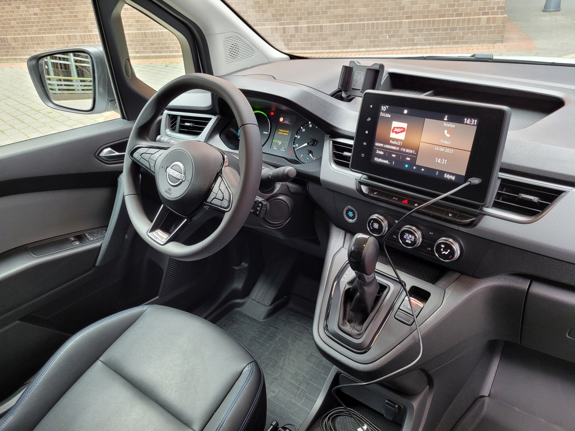 Elektrycznego Townstara rozpoznamy nie tylko po zielonych tablicach rejestracyjnych. W modelu tym lampy LED są standardem, na masce pojawia się inne logo i dedykowana elektrykom osłona przednia. Pojazd ma przyjemną dla oka sylwetkę, jednoznacznie informującą, że mamy do czynienia z pojazdem nastawionym na wysoką praktyczność. Obsługa samochodu jest przyjazna i intuicyjna. Jesteśmy zewsząd otoczeni twardymi tworzywami o raczej przeciętnej jakości. Tyle że na tle innych modeli w segmencie Nissan i tak wyróżnia się w tym względzie na plus. Przednie drzwi możemy otworzyć pod kątem prawie 90 stopni. Producent nie przesadził z tabletomanią, montując na środkowej konsoli wyświetlacz o przekątnej 8 cali. To na nim możemy m.in. śledzić obraz z systemu kamer 360º. Jest to nowość w segmencie kompaktowych samochodów użytkowych, choć niedostępna w większości wariantów. Plusem Nissana są nieźle wyprofilowane siedzenia. Praktyczny okazuje się głęboki wysuwany z deski rozdzielczej schowek z przodu przed pasażerem.