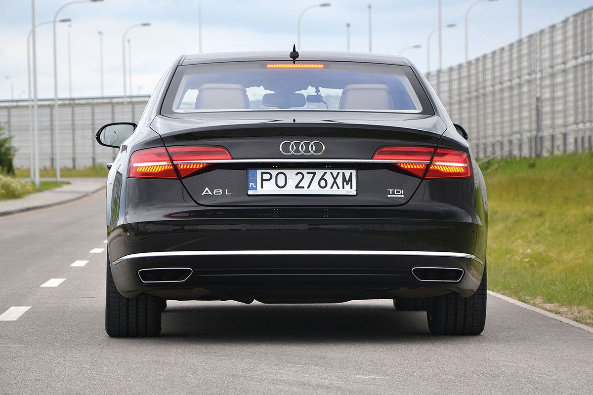 Testowaną limuzynę wyposażono w najmocniejszego diesla V8 4.2 TDI o mocy 385 KM i maksymalnym momencie obrotowym aż 850 Nm (w zakresie 2000‒2750 obr./min). Audi daje nam do wyboru jeszcze słabszego diesla 3.0 TDI (258 KM/580 Nm) oraz trzy jednostki benzynowe: 3.0 TFSI (310 KM/440 Nm), 4.0 TFSI (435 KM/600 Nm) oraz dwunastocylindrowy wariant z motorem 6,3 litra o mocy 500 KM (625 Nm). Testowany wariant oferuje znakomite osiągi (setkę osiąga w 4,7 sekundy) przy umiarkowanym jak na gabaryty spalaniu. Co więcej, znakomicie z silnikiem współgra 8-biegowa przekładnia Tiptronic, która szybko i bezbłędnie wyczuwa intencje kierowcy, zmieniając przełożenia w sposób niemal niezauważalny. Podczas spokojnej jazdy Audi spalało niecałe 9 litrów oleju napędowego na setkę. Bardziej dynamiczna jazda miejska podbijała spalanie o trzy‒cztery litry.