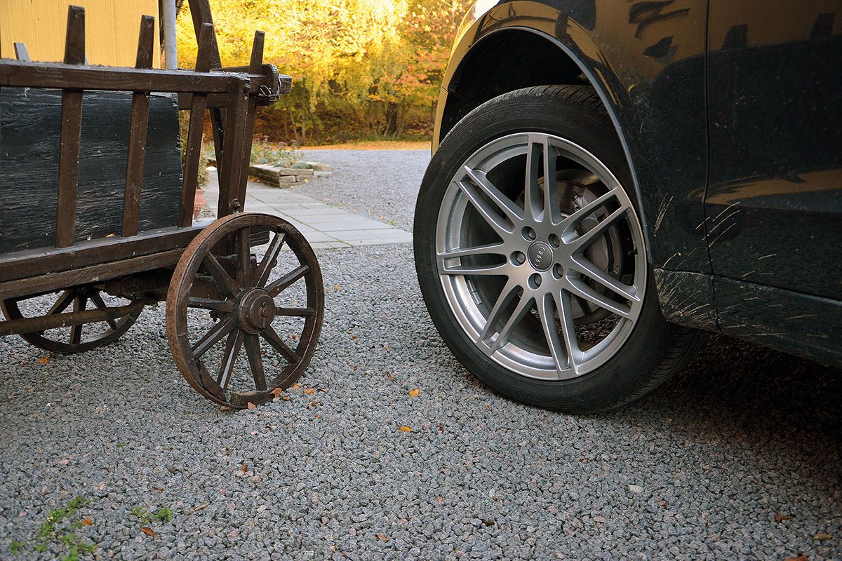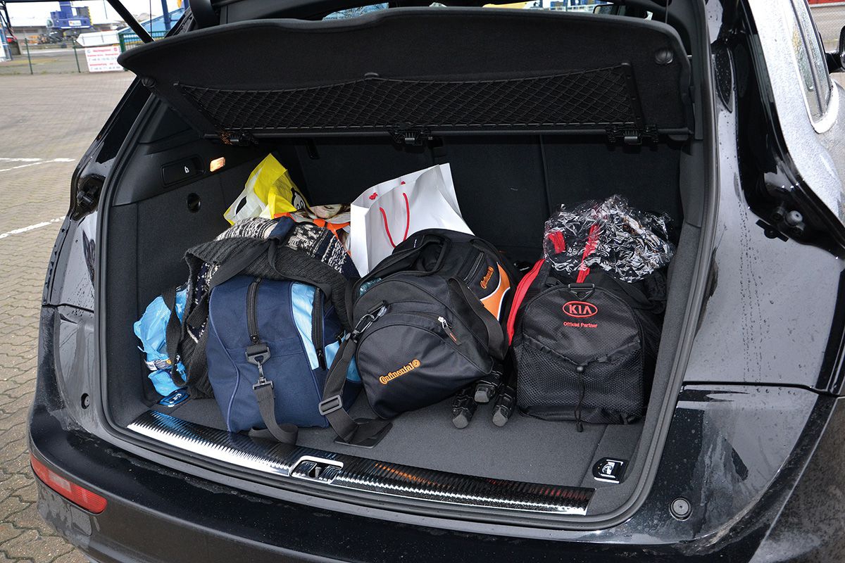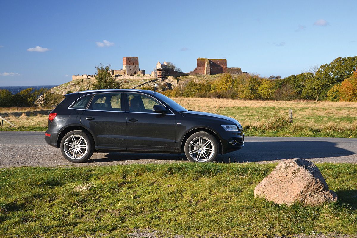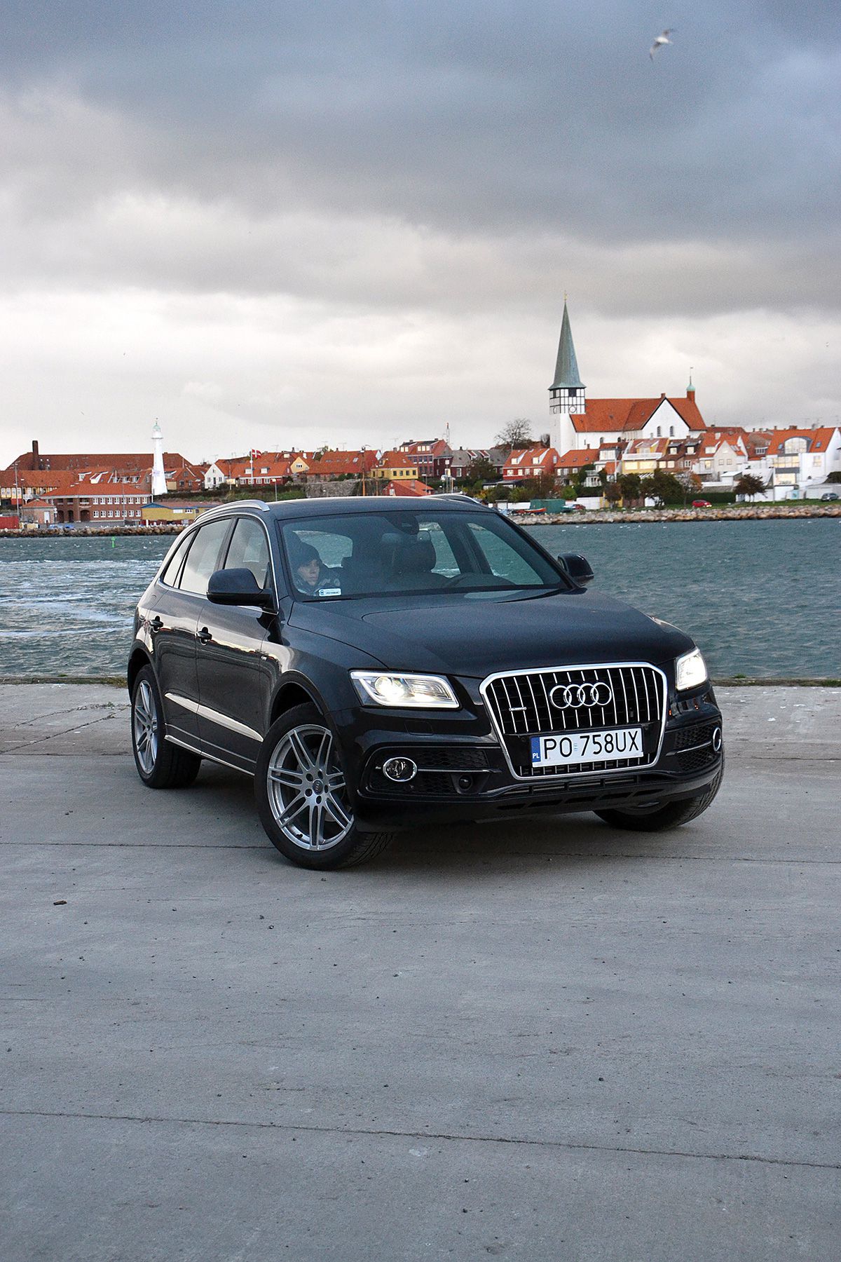 Dwóch pasażerów bez problemu zapakowało swój ekwipunek do bagażnika o pojemności 540 litrów, w którym producent przewidział wiele zmyślnych i praktycznych przegródek. Ładowność 610 kg, choć wystarczająca, jest zdecydowanie mniejsza niż w wielu innych pojazdach typu SUV. Dodajmy, że Audi może również ciągnąć przyczepę hamowaną o masie 2400 kg. Aby dotrzeć na Bornholm, konieczna była najpierw ok. 800-kilometrowa podróż z Warszawy do niemieckiego Sassnitz, skąd wypływał prom na wyspę. Podróż odbywała się głównie autostradami, na których dwulitrowy diesel wystarczająco dobrze radził sobie z tym autem. Samochód dysponował maksymalnym momentem obrotowym 380 Nm w zakresie 1750–2500 obr./min. Pozwala on na rozpędzenie dwutonowego SUV-a z dwójką pasażerów i bagażami do setki w nieco ponad 9 sekund. Te niezłe skądinąd wyniki nie robią zapewne wrażenia na części nabywców aut segmentu premium. Dla bardziej wybrednych Audi oferuje w Q5 znacznie mocniejsze jednostki benzynowe i diesla o mocach odpowiednio 272 i 245 KM. Podstawowy motor Diesla zasługuje na pochwałę za niskie spalanie, które na autostradzie wynosiło ok. 8–9 l, rosnąc jednak wyraźnie przy jeździe z prędkościami bliskimi maksymalnych 200 km/h (do ok. 11–12 l na setkę).