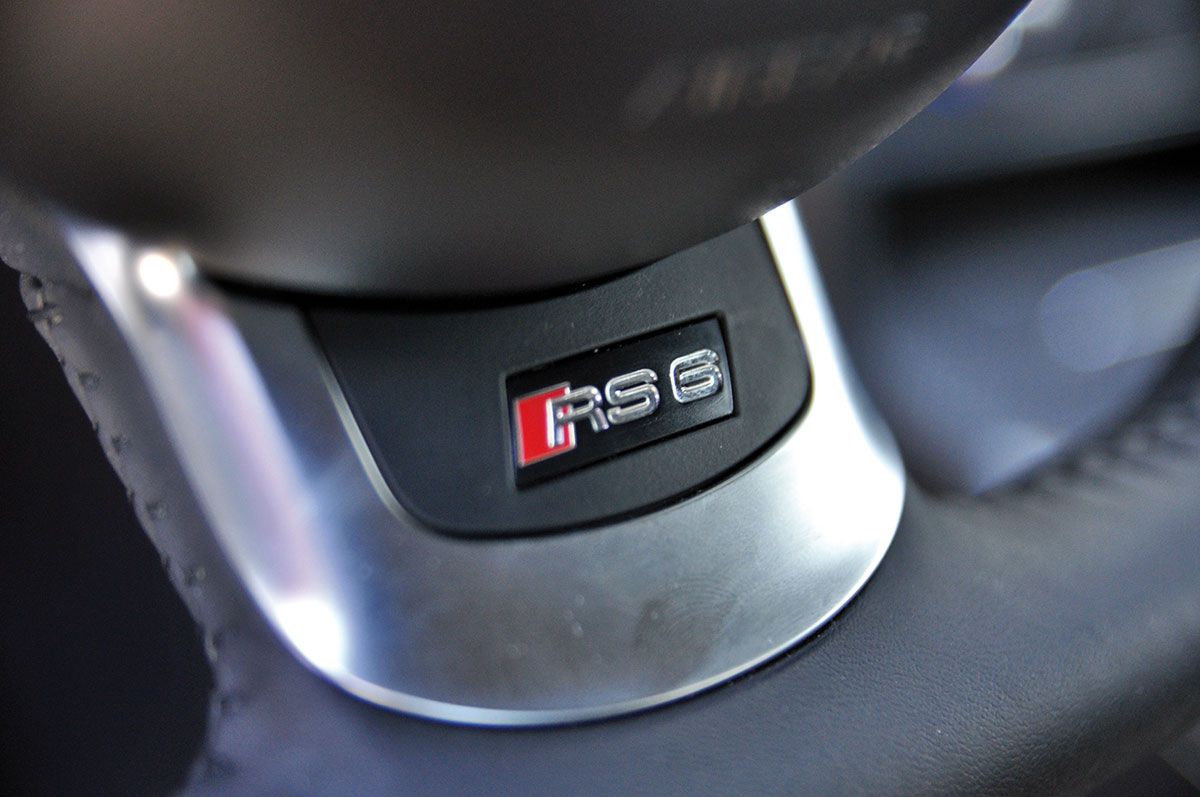 Podobnie jest we wnętrzu. Spłaszczona kierownica z małym znaczkiem RS6, sportowe fotele i dodatki z karbonu. Tylko te elementy zdradzają, że klasyczne kombi od tego dzieli jakieś 400 KM.