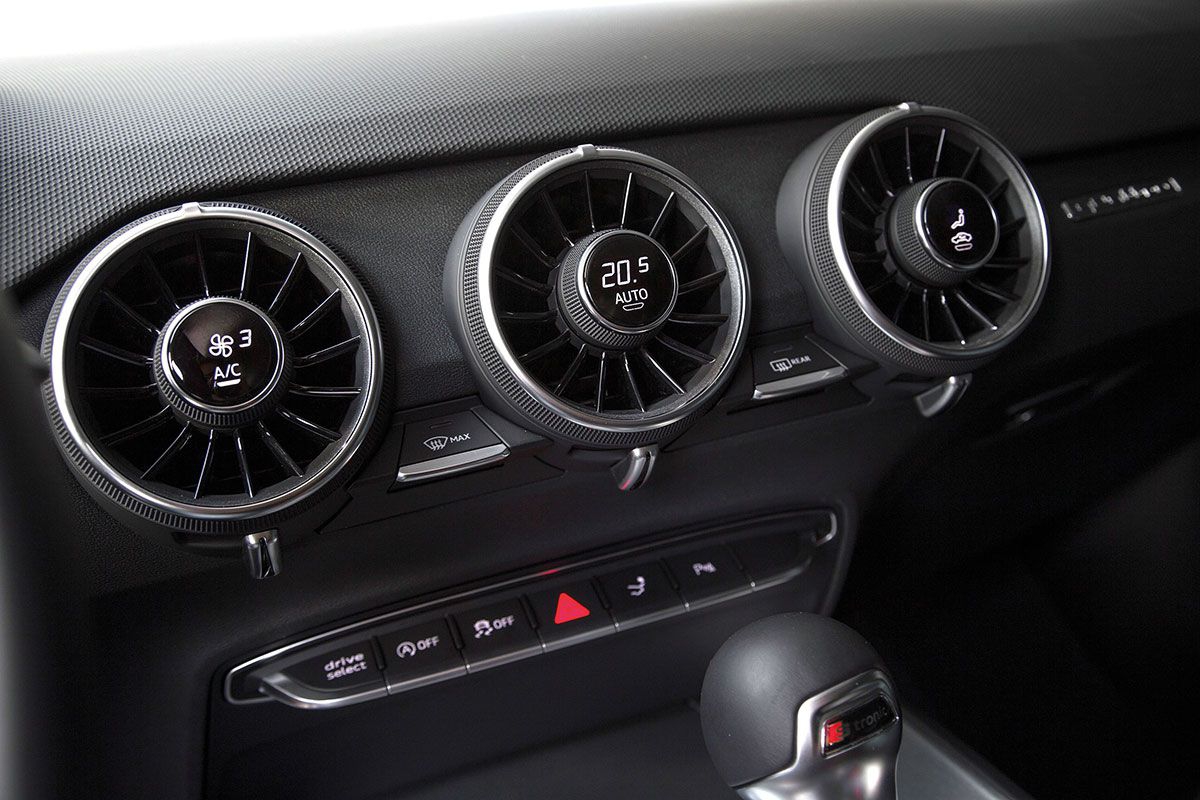 Bardzo podoba mi się wnętrze. Jest całkowicie zorientowane na kierowcę. To w jego stronę zwrócony jest kokpit, to przed oczyma kierowcy jest umieszczony ekran i to z kierownicy może on obsłużyć wszystkie dostępne funkcje. Kiedy zdecydujemy się na bycie pasażerem w TT, to śmiało możemy skupić się na malowaniu paznokci, esemesowaniu czy czymkolwiek innym. Niesamowicie fajne są wloty nawiewów, przypominające, celowo, turbiny samolotów. Dodatkowo, to właśnie w nawiewach umieszczono sterowanie klimatyzacją i podgrzewaniem foteli. Wygląda to bajecznie. Kierownica jest wyborna i wyborne są fotele. Zapomnijmy jednak o przewożeniu kogokolwiek na tylnej kanapie, chyba że żywimy do tej osoby jakąś głęboko skrywaną urazę.