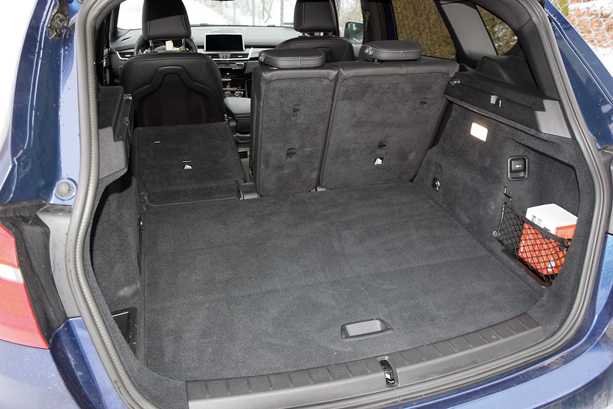 Naturalnie Active Tourer oferuje bardziej przestrzenny bagażnik niż klasyczne kompakty i crossovery. Do ładowni BMW włożymy przedmioty o kubaturze do 468 litrów, a po złożeniu oparć kanapy nawet 1510 litrów. Pod pokrywą bagażnika znajdziemy obszerną wnękę o pojemności 70 litrów z segregatorem na dodatkowe mniejsze przedmioty. Minimalnie, ale jednak, większy jest kufer Mercedesa klasy B (488 l/1547 l). Cenną zaletą BMW jest możliwość składania fotela pasażera z przodu (opcja), dzięki czemu możemy przewieźć przedmioty o długości nawet 240 cm.