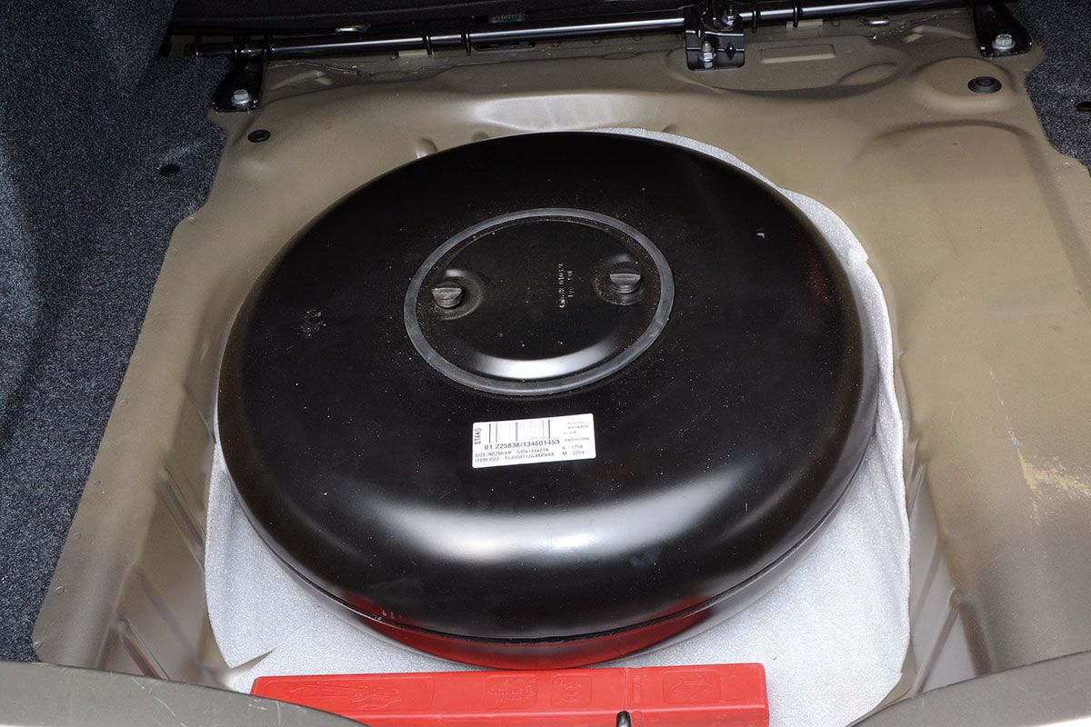 Jak na markę z szewronem na masce, wygląd nadwozia C-Elysee zachwytów nie budzi, ale nie taki był cel przy tworzeniu tego modelu. Ma być praktycznie i obszernie, z którego to zadania sedan ten wywiązuje się nieźle. A teraz dzięki instalacji gazowej mamy możliwość również wyraźnie tańszej jazdy. Z zewnątrz nie jesteśmy w stanie rozpoznać wersji zasilanej na LPG. Dopiero pod klapką wlewu paliwa odkrywamy dodatkowy wlew gazu. Ponieważ C-Elysee powstał w oparciu o wydłużoną płytę podłogową Citroëna C3, czyli auta segmentu B, to jego nadwozie jest przeciętnie 5–8 cm węższe od aut kompaktowych. Zatem trzem pasażerom z tyłu będzie ciasnawo, ale nie zabraknie im przestrzeni nad głowami i na nogi. Pasażerowie nie będą także narzekać na ilość miejsca w bagażniku, którego pojemność wynosi 508 l (po opuszczeniu oparć kanapy wzrasta do 1038 l). Otwór bagażnika nie jest zbyt duży, a potężne zawiasy mogą utrudniać rozłożenie bagaży w kufrze. W bagażniku pod podłogą, w miejscu koła zapasowego, zamontowano toroidalny, 35-litrowy zbiornik na LPG firmy Stako. Pełnowymiarowe koło zapakowano w torbę, którą możemy dowolnie umieścić w samochodzie.