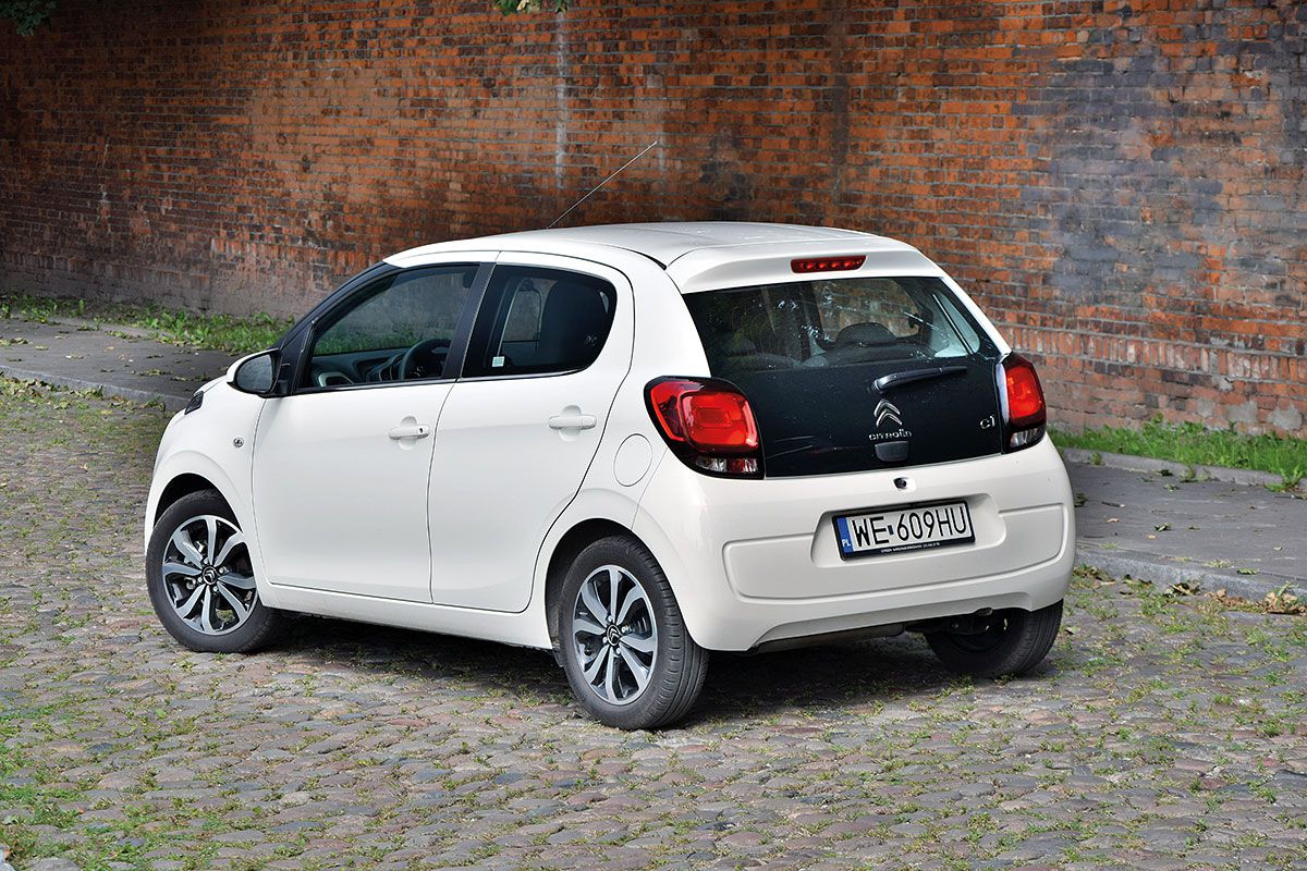 Najtańszy model C1 z litrowym silnikiem, trzydrzwiowym nadwoziem i w wersji Start kosztuje 35 700 zł. Wariant pięciodrzwiowy, ale dostępny tylko od wersji Live, to już wydatek 39 100 zł. W obu modelach przednie szyby możemy opuszczać tylko przy użyciu korbki, oparcie tylnej kanapy nie jest dzielone, brakuje obrotomierza, a centralnego zamka nie ma nawet w opcji. Szyby regulowane elektrycznie, klimatyzacja manualna oraz proste radio pojawiają się w standardzie dopiero od wersji Feel (ceny od 41 500 zł). To 2,5 tys. zł więcej niż w wyraźnie większym i jeszcze lepiej wyposażonym Mitsubishi Space Star. Na testowany egzemplarz w wersji Shine trzeba wyłożyć 48 700 zł, a to już zaporowa kwota jak za tak mały pojazd. W tym wariancie standardem są m.in. aluminiowe felgi czy system multimedialny z ekranem dotykowym. Citroën stara się już oficjalnie nie komunikować rabatów na swoje samochody, ale bez nich się nie obejdzie, jeśli importer chce sprzedawać większą liczbę tych pojazdów.