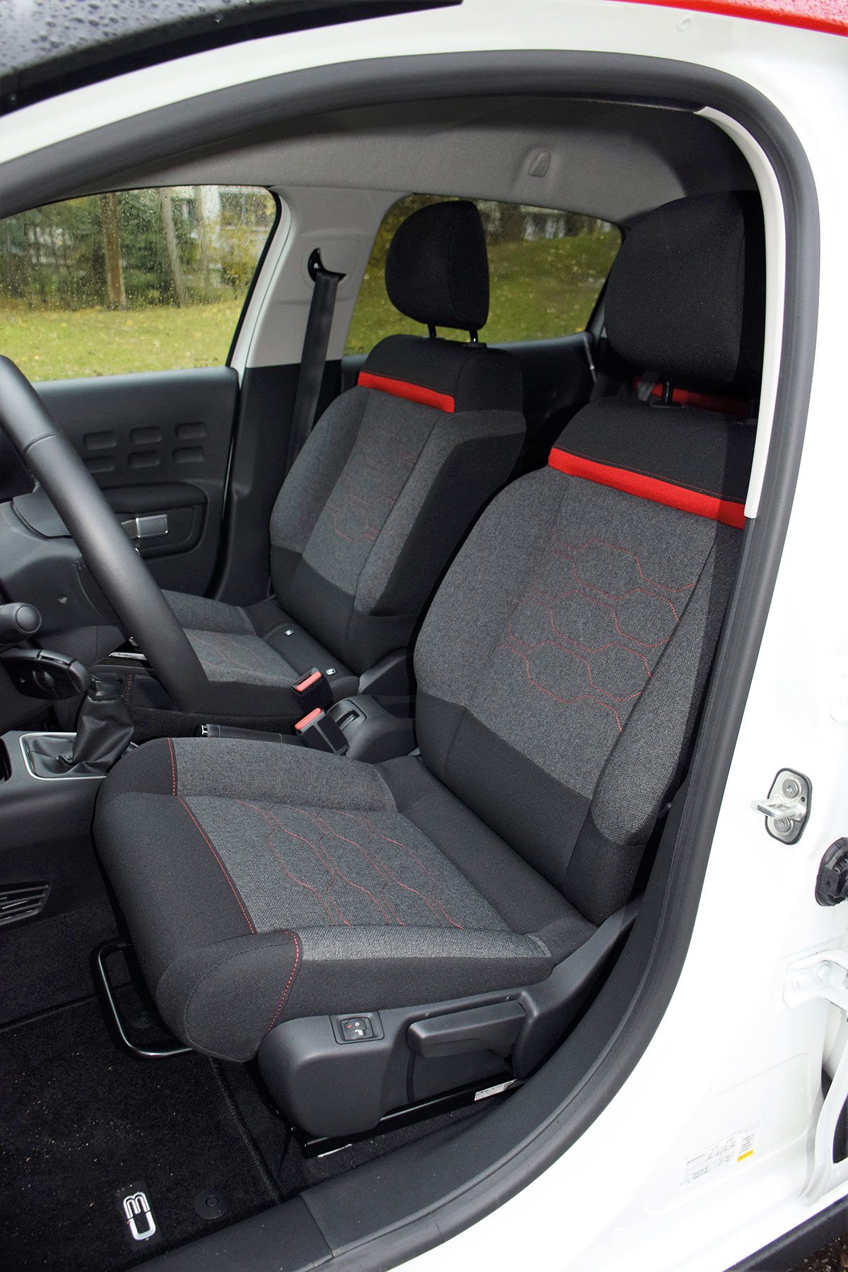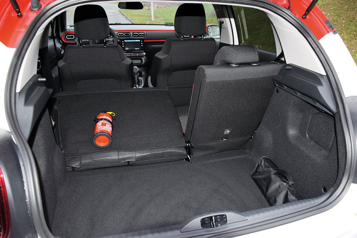 Miękkie i wygodne fotele ocenilibyśmy w samych superlatywach, gdyby nie dość słabe trzymanie boczne. Producent pomyślał za to o licznych schowkach i wnękach na kubki, montując je również między fotelami. Mimo znacznie niższego nadwozia niż w poprzedniku, nad głowami pasażerów nie brakuje miejsca, a francuski mieszczuch w niezłym komforcie przewiezie czwórkę pasażerów. Szerokość kabiny nad podłokietnikami, wynosząca 138 cm, jest o 2 cm większa w porównaniu do modelu poprzedniej generacji. Pojemność bagażnika w zestawieniu z poprzednikiem nie zmieniła się i wynosi 300 l. Po złożeniu oparć kanapy bagażnik powiększa się do 922 l. Citroën, na szczęście, nie powtórzył w modelu C3 błędów popełnionych w Cactusie. Zatem tylna kanapa jest dzielona, a okna w drugim rzędzie drzwi można opuszczać (elektrycznie tylko w wersji Shine). Szkoda tylko, że po złożeniu oparć powstaje na podłodze wyraźny próg.