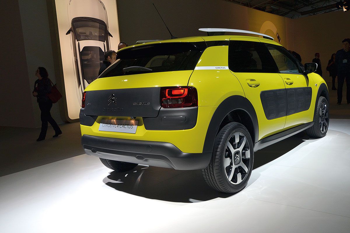 Citroën C4 Cactus jest trudny do sklasyfikowania w konkretnym segmencie. Biorąc pod uwagę rozstaw osi (260 cm, czyli tyle samo co w C4, z którym dzieli platformę), można go sklasyfikować jako pojazd kompaktowy. Cactus ma długość 416 cm, szerokość 173 cm i wysokość 148 cm. W porównaniu z modelem C4, nowy Citroën jest 200 kg lżejszy i w podstawowej wersji waży ledwie 965 kg. Krótkie zwisy w tym modelu, pełne oryginalnych rozwiązań nadwozie, relingi dachowe oraz listwy ochronne na nadwoziu i nadkolach sugerują, że mamy do czynienia z crossoverem. Tworzywo na bokach nadwozia ma specjalne kapsuły wypełnione powietrzem (Airbumps), które w założeniu mają amortyzować lekkie uderzenia. Sprytnym rozwiązaniem są dysze spryskiwaczy, które zamontowano bezpośrednio w wycieraczce (podobnie jak np. w Mercedesach), dzięki czemu do równie dobrego umycia szyby samochód potrzebuje 50% mniej wody niż przy klasycznych rozwiązaniach.