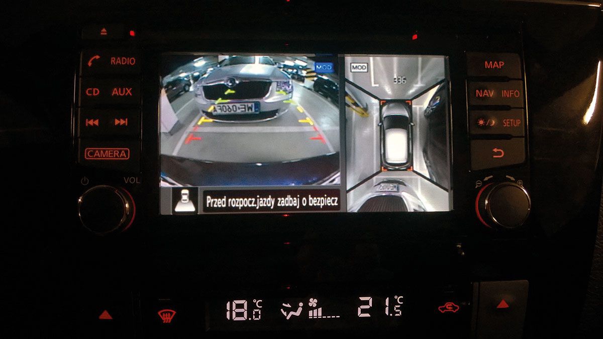 Bardzo wygodne fotele, które nie męczyły nawet przy pięciogodzinnej podróży, mogłyby jednak w najdroższej wersji zawierać regulację podparcia lędźwiowego. Zaskoczenie jednego z pasażerów wzbudził mięciutki podłokietnik w drzwiach, godzien auta klasy wyższej. Innego natomiast zaskoczyły guziki podgrzewania foteli, jakby żywcem wyjęte z lat 90. Poza tym jednak nowoczesność rządzi, począwszy od bezproblemowego połączenia z komórką przez Bluetooth, aż po widok z czterech kamer wyświetlany na panelu środkowym. Symulacja widoku auta znad dachu sprawia, że człowiek chciałby wyciągnąć telefon, odpalić specjalną aplikację i… sterować Nissanem niczym autkiem w grze. System kamer pomaga w manewrach, choć widoczność z fotela kierowcy we wszystkie strony jest bardzo dobra. Z drugiej strony, osobie przyzwyczajonej do dźwiękowych czujników cofania może nieco brakować charakterystycznych odgłosów towarzyszących zbliżającej się przeszkodzie.