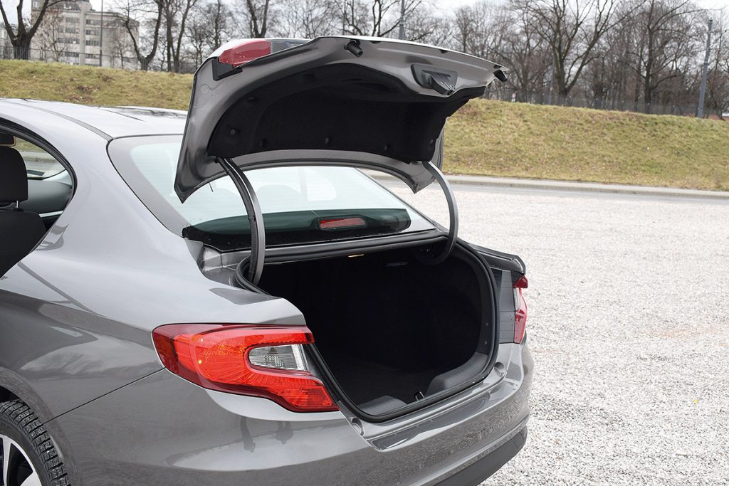 Także wnętrze Tipo robi dobre wrażenie. Prosta deska rozdzielcza co prawda nie wyznacza trendów motoryzacyjnej mody, ale jest funkcjonalna. Wszystkie przełączniki mamy pod ręką, nie brakuje praktycznych uchwytów na napoje, a w bogatszych wersjach możemy korzystać z ekranu dotykowego o symbolicznej przekątnej 5 cali. Docenimy także wygodę foteli oraz tworzywa w kabinie (górną połać deski wykonano z miękkiego plastiku), które są lepsze od tych, jakie znajdziemy w Škodzie Rapid czy Peugeocie 301. Wspomnianą konkurencję nowość Fiata bije na głowę w zakresie ilości miejsca dla pasażerów drugiego rzędu. Dzięki temu parametrowi Tipo z pewnością zainteresuje taksówkarzy. Sedan włoskiej marki dysponuje także pokaźnym bagażnikiem o pojemności 520 litrów.