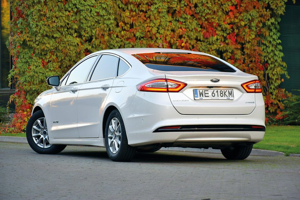 Sedan Forda jest napędzany przez 2-litrowy silnik benzynowy (140 KM/173 Nm przy 4000 obr./min) współpracujący z motorem elektrycznym (120 KM/240 Nm). Oba silniki wytwarzają w tandemie łącznie 187 KM i maks. 175 Nm momentu obrotowego, który jest przenoszony na przednie koła poprzez bezstopniową skrzynię eCVT. Mondeo Hybrid w czasie normalnej jazdy miejskiej spalał ok. 5,5 l benzyny na 100 km, a w trasie na drodze szybkiego ruchu ok. 7,6 l/100 km. Przy odrobinie wprawy możemy nasze spalanie obniżyć o 1,5‒2 l/100 km. Szczególne oszczędności są możliwe w ruchu miejskim, gdyż tam możliwe jest pokonanie kilkukilometrowych tras w trybie EV, nie będąc przy tym zawalidrogą. Mondeo może się pochwalić dużą skutecznością odzyskiwania energii podczas hamowania, zwłaszcza po przełączeniu dźwigni zmiany biegów w pozycję L. Przy umiejętnej jeździe korzystanie z hamulca uda nam się ograniczyć do minimum. Także osiągi zasługują na uznanie. Ten półtoratonowy pojazd długości 487 cm rozpędza się do setki w zaledwie 9,2 sekundy. Wrażenie rozpędzania od 0 do 50 km/h jest znakomite za sprawą ruszania głównie przy użyciu jednostki elektrycznej, której pełny moment obrotowy jest dostępny natychmiast po naciśnięciu pedału gazu. Niestety, na krytykę zasługuje skrzynia biegów eCVT. Jeśli podczas nieśpiesznej podróży pracuje ona bezgłośnie, sprawiając, że pojazd płynnie i łatwo nabiera prędkości, przy mocnym wciskaniu pedału gazu z początku nie dzieje się nic. Następnie silnik zaczyna nieprzyjemnie wyć, ale nie oznacza to, że pojazd zaczyna równolegle dynamicznie przyśpieszać. Hybrydowy Ford za to spisuje się wzorowo w zakresie precyzji prowadzenia i właściwości jezdnych.