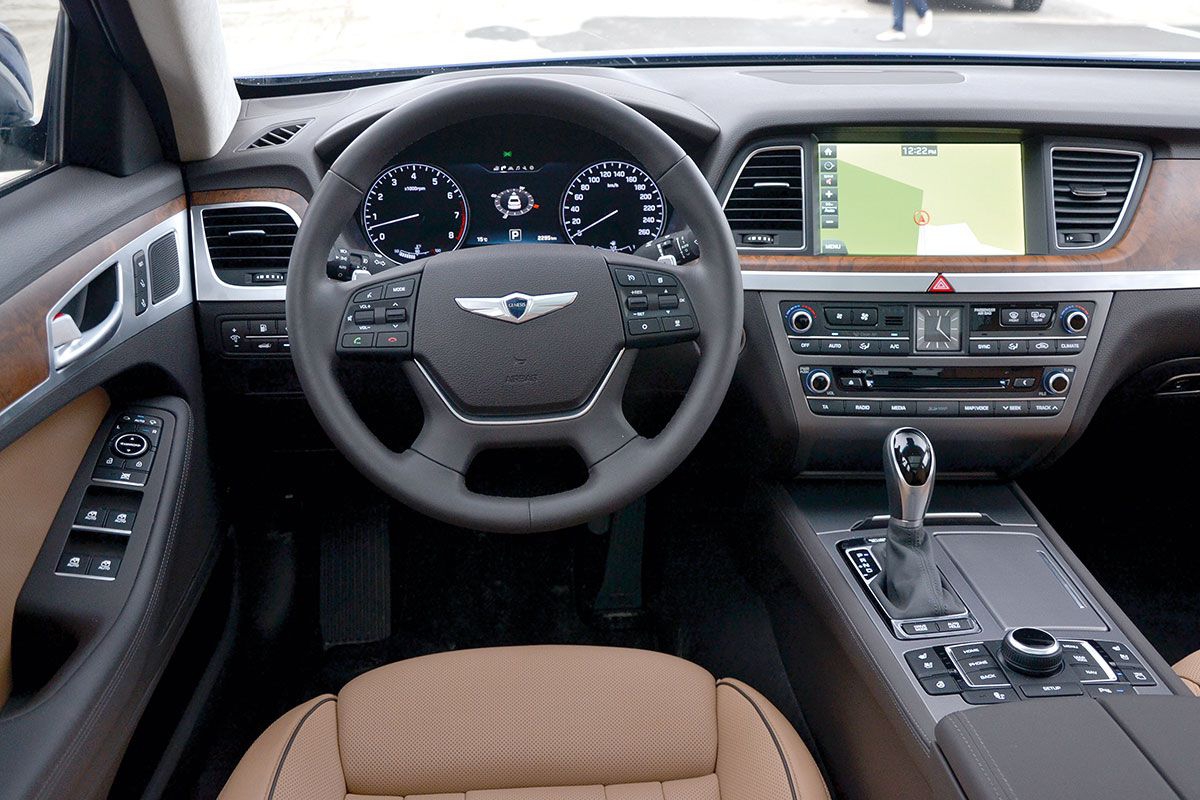 Bardzo pozytywne wrażenia wzbudza wnętrze Genesisa. Dotychczas żaden model Hyundaia nie był wykończony tak wysokiej jakości materiałami (pomijając Equusa). Po plastikowym drewnie, znanym ze starszych modeli koreańskich marek, nie ma w Genesisie ani śladu. W każdym sedanie do wykończenia wnętrza posłużyło prawdziwe drewno (jesion lub orzech włoski), a srebrzyste elementy deski i drzwi nie są plastikiem a prawdziwym aluminium. Do tego wszystkie fotele obszyte są skórą nappa, dostępną w różnych odcieniach. Podsufitkę i słupki pokryto zamszową tapicerką. Na środkowej konsoli nie mogło oczywiście zabraknąć zegarka oraz potężnego wyświetlacza dotykowego systemu multimediów i nawigacji. Jeśli jednak spojrzymy na wnętrze Genesisa z dystansu, to zdamy sobie sprawę, że jest ono owocem podpatrywania rozmaitych modeli segmentu premium. Owszem, jest ono skrojone dobrze, a nawet bardzo dobrze, ale bez własnego, silnego charakteru.