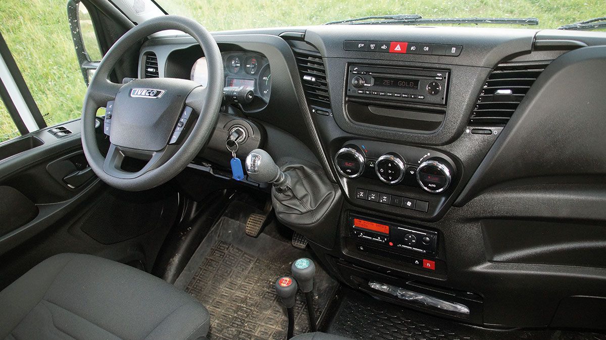 Dlatego w nowym Daily na uwagę zasługuje sześciostopniowa skrzynia biegów z nadbiegiem, która wraz ze skrzynią rozdzielczą o czterech przełożeniach daje aż 24 różne biegi. Jednak dobry układ przeniesienia napędu to nie wszystko. Szczególna wersja specjalistyczna IVECO Daily Allroad, stworzona we współpracy z firmą Achleitner, znającą temat napędów terenowych od podszewki, dysponuje zmiennym rozdziałem mocy przy stałym napędzie na cztery koła oraz jedyną dostępną w klasie blokadą mechanizmu różnicowego przedniej osi. Dzięki dostępnym trzem konfiguracjom blokowania mechanizmów różnicowych, możliwości terenowe pojazdu, jak mogliśmy się przekonać na odcinku testowym podczas prezentacji w Bielsku-Białej, wydają się niewyczerpane. Kąty natarcia podwozia – sięgające 49 stopni oraz zejścia – nawet 33 stopni, to parametry godne najbardziej terenowych samochodów, a przy okazji, w większości porównywalnych kategorii, dają przewagę nad pojazdami dostawczymi konkurencji. Poza większym o kilkanaście cm prześwitem (całe 300 mm wobec niecałych 200 mm), nie jest to zwykle miażdżąca przewaga – sięga kilku stopni lub centymetrów, ale dla wielbicieli suchych danych zawsze to coś. Do tego maksymalna zdolność pokonywania wzniesień sięgająca 45 stopni oraz głębokość brodzenia do 660 mm (dla Allroad 600 mm) czyni z IVECO pojazd i jego kierowcę gotowymi do podejmowania wyzwań w najtrudniejszym terenie bez obniżenia komfortu jazdy. Lub po prostu wielkiej frajdy z jazdy, a niekiedy również adrenaliny. Wewnątrz Daily jest tak samo wygodny jak zwykłe samochody osobowe i zachowuje się podczas jazdy jak każdy inny samochód dostawczy. Jedynie nieco bardziej niż w przypadku wersji tradycyjnej kierowca odczuwa większą masę własną pojazdu i wyżej umiejscowiony środek ciężkości podczas jazdy na zakrętach. W zamian za to nieutwardzony teren poza drogą nie stanowi już większego ograniczenia. Niestety, na razie nie wiemy, jak jest w drugą stronę. Jako pojazd dostawczy Daily 4x4 ma teraz mniejszą ładowność, ale mimo to jego zachowanie na zwykłej drodze pod obciążeniem na pewno ulega zmianie. Co ciekawe, oprócz klimatyzacji obsługiwanej manualnie przewidziano również wersję automatyczną. Wysoka jakość zastosowanych materiałów w kabinie, interesująca stylistyka kokpitu oraz ergonomiczne, nowe fotele to ukłon w stronę najnowszych wymagań współczesnego kierowcy. Natomiast panoramiczna szyba przednia i optymalnie rozmieszczone, dobrze widoczne i znajdujące się w zasięgu ręki wskaźniki i przyrządy ułatwiają prowadzenie tego pojazdu. A trzeba przyznać, że instrumentów do obsługi pokładowej jest tutaj sporo. Do ustawienia na przykład skrzyni rozdzielczej przewidziano aż dwie dźwignie. Na szczęście, obsługa pozostałych funkcji konfiguracji blokad napędu to tylko trzy przełączniki. Układ hamulcowy to zestaw, w którym na osi przedniej znajdują się hamulce tarczowe, a na osi tylnej bębnowe z dostępnym układem ESP.