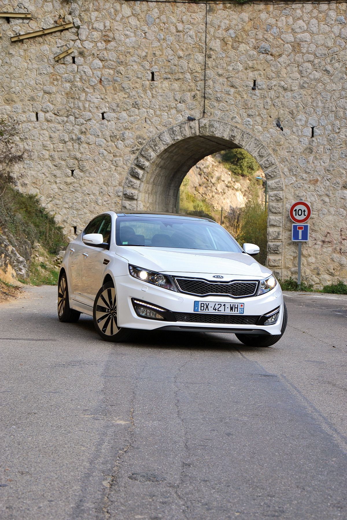 Optima jest oferowana na razie tylko z dieslem 1.7 CRDi o mocy 136 KM wyposażonym w turbosprężarkę o zmiennej geometrii (VGT). W drugim kwartale 2012 roku dołączy 2-litrowy silnik benzynowy o mocy 170 KM. Standardowo montowana jest manualna przekładnie 6-biegowa, jednak za dopłatą 5 tys. zł dostaniemy automat. W naszej opinii wersja z przekładnią manualną prowadzi się wyraźnie przyjemniej, jest przy tym bardziej dynamiczna i mniej paliwożerna, co zresztą również widać po danych katalogowych. Szczególnie interesującym wariantem będzie, pod względem technicznym, a nie wolumenowym, hybryda. Pojawi się ona na rynku w trzecim kwartale 2012 roku. W tym modeli 2-litrowy silnik benzynowy o mocy 150 KM będzie współpracował z motorem elektrycznym (40 KM).