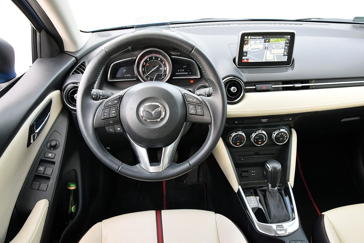 Prezentowany wariant SkyPassion jest najdroższą wersją w ofercie w cenie 64,9 tys. zł, jednak jej wyposażenie jest właściwie kompletne. Z elementów do niedawna rzadko spotykanych w segmencie B w wyposażeniu dwójki znalazły się m.in. wyświetlacz Head-up, system ostrzegający o pojeździe w martwym polu czy system ostrzegania przed niezamierzoną zmianą pasa ruchu. W zestawieniu z konkurencją Mazda nie wypada źle. Toyota Yaris z silnikiem 1.3/99 KM i skrzynią automatyczną jest droższa o 2 tys. zł, a Hyundai i20 14 MPI/100 KM aż o 4 tys. zł. Tysiąc złotych mniej zapłacimy za obszerniejszego, ale nie tak przyjemnie prowadzącego się Opla Corsę 1.4/90 KM.