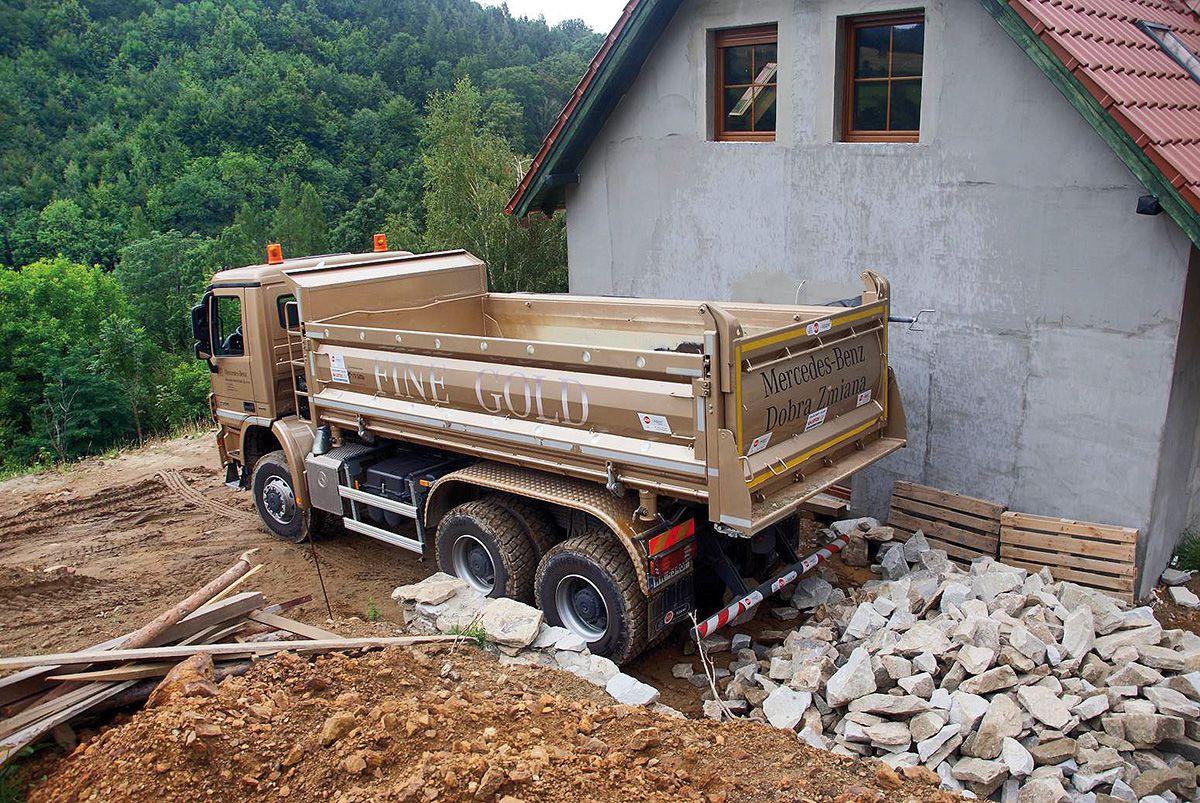Poczucie prowadzenia tego Mercedesa jako ciężarówki o wiele mniejszej, niż jest w rzeczywistości, towarzyszy kierującemu przez cały czas jazdy. Sekret tkwi w dużej mocy dostępnej w każdej chwili. Mocy, którą można mieć już po lekkim naciśnięciu pedału gazu i która w sposób stanowczy targnie tonami masy wywrotki wraz z jej ładunkiem na każdego rodzaju nawierzchni. Rozważając chęć uzupełnienia floty pojazdów o auta budowlane, wypada dokładnie przewidzieć najczęstsze warunki ich eksploatacji. Jeśli będą w większości jeździły w tak trudnym terenie jak ten, na którym testowaliśmy Actrosa, warto wybrać samochody z napędem wszystkich osi. Ich wyższa cena zakupu szybko zrekompensuje się niemal nieograniczoną mobilnością w każdych warunkach terenowych. A przy tym mocna, dostosowana do takiego traktowania auta konstrukcja rokuje długą i bezawaryjną eksploatację.