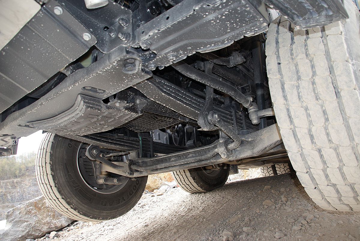 Nie da się też ukryć, że zgromadzona podczas jazdy w szybach, kołach, kominie, plastikach, mostach, czy ramie i – co najważniejsze – w ładunku zgromadzonym na zabudowie, energia kinetyczna wydaje się pchać pojazd wciąż do przodu siłą rozpędu. Nawet, gdy maszyna praktycznie stoi w miejscu. Ale z tym również upora się komputer, utrzymując siłę ciągu i wartość przełożenia na adekwatnym do aktualnego obciążenia poziomie. Czyli pod górę odpycha się sam do przodu, a z górki nie ma jazdy na pazurki dzięki potężnej mocy hamulców – zasadniczego i silnikowego w kilku stopniach do wyboru.
