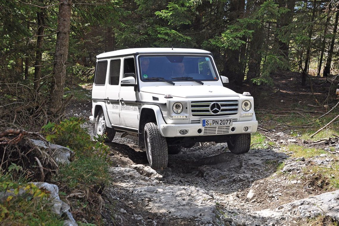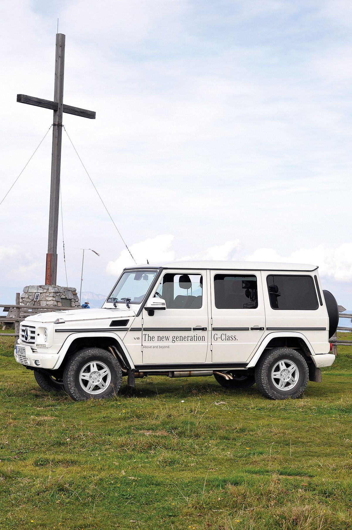 Nie jest to obiektywne, ale chciałbym mieć taki samochód, najlepiej w wersji Professional. Dla przybliżenia: to wersja, gdzie w podłodze są korki spustowe, żeby miała którędy wylecieć woda. Ale rynek oczekuje czegoś innego – luksusowych terenówek. Dlatego Gelenda otrzymała wszelkie atrybuty samochodu luksusowego, nie tracąc przy tym swoich właściwości terenowych. Mamy nawigację, kontrolę trakcji, skórzaną tapicerkę, bi-ksenony. Miałem powiedzieć, co tak naprawdę powoduje ludźmi, którzy są w stanie wydać na samochód więcej, niż ja wydam na wszystko przez całe moje życie, wliczając w to kredyty. Decydują o tym właściwości terenowe. Oczywiście, reduktor, centralny mechanizm różnicowy z blokadą, także blokada przedniego mostu i blokada tylnego mostu. To wszystko robi wrażenie, kiedy okazuje się, że masz do dyspozycji pięć Gelend, z kierowcami nieznającymi strachu, ale za to znającymi górę testową, po której będziemy jeździć.