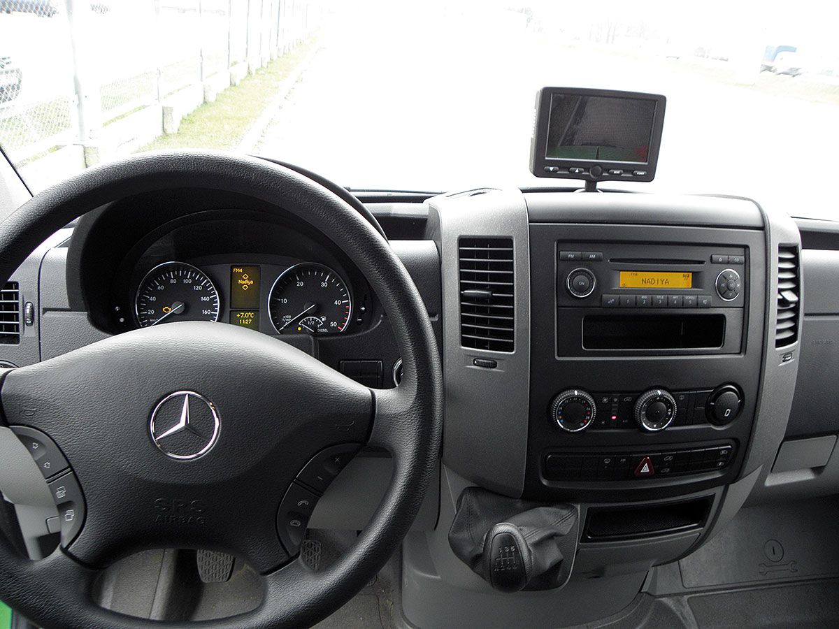 Czy naprawdę nie lecę osobówką? Z jednej strony nie – wystarczy spojrzeć na Sprintera stojącego obok dowolnej osobówki, żeby nie mieć wątpliwości, że to zupełnie inna klasa auta. Kto jeszcze ma wątpliwości, niech zajrzy sobie do przestrzeni bagażowej – można tam nie tylko zmieścić materiały do budowy niewielkiego domku, ale też zrobić imprezę na kilkanaście osób i to bez obawy, że ktoś zawadzi głową o sufit. Jednak, z drugiej strony prawda jest taka, że zmiana samochodu z małego miejskiego autka, dajmy na to Toyoty Yaris, na Mercedesa Sprintera wcale nie jest trudna. Po prostu w Mercedesie siedzi się dużo wyżej, przez wielką przednią szybę (i do tego podgrzewaną) mamy widok, o którym w yarisce mogliśmy tylko pomarzyć. Jest cichutko, wygodnie, wnętrze wygląda bardzo ładnie, pozycja za kierownicą jest nawet wygodniejsza niż w przeciętnym osobowym aucie. Na początku może przeszkadzać brak centralnego lusterka, ale można się do tego przyzwyczaić – w bocznych lusterkach wyposażonych dodatkowo w małe lusterka szerokokątne wszystko doskonale widać, a jeśli chodzi o cofanie – nie ma problemu, w momencie zapięcia biegu wstecznego na 7-calowym monitorze na kokpicie pojawia nam się obraz z kamery umieszczonej z tyłu auta.