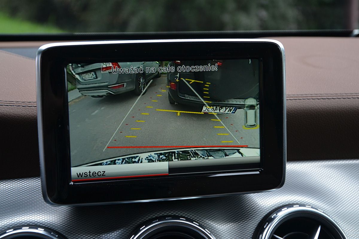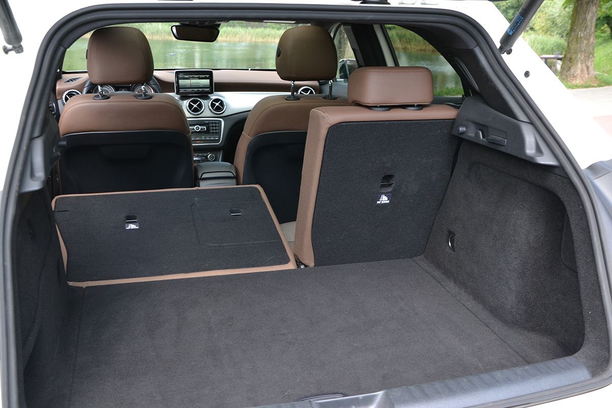 Na środkowej konsoli między fotelami nie znajdziemy dźwigni zmiany biegów, a jedynie trzy schowki oraz pokrętło wielofunkcyjne przeznaczone do obsługi systemu multimedialnego. Dźwignia biegów dwusprzęgłowej skrzyni 7G-DCT zawędrowała pod kierownicę. Sam ekran multimedialny, osadzony na górnej części środkowej konsoli może mieć przekątną od 5,7 do 7 cali, jednak nie jest on niestety dotykowy. Wprawny wybór funkcji dokonywany przez wspomniane pokrętło na środkowej konsoli wymaga nieco praktyki. Z czasem obsługa okazuje się prosta i intuicyjna. Bagażnik tego crossovera jest nawet większy niż w modelu klasy A – 421 litrów (+100 l). Po opuszczeniu oparć tylnej kanapy jego kubatura wzrasta do 1235 litrów.