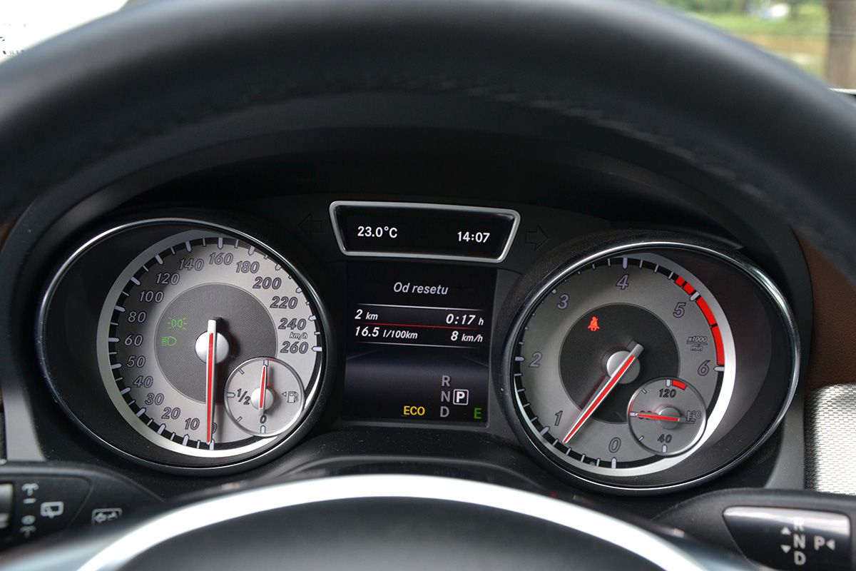 Model GLA ma przeciętny apetyt na paliwo, zadowalając się w ruchu pozamiejskim 6–6,5 litra oleju napędowego na setkę, a w mieście ok. 8,5 l/100 km.