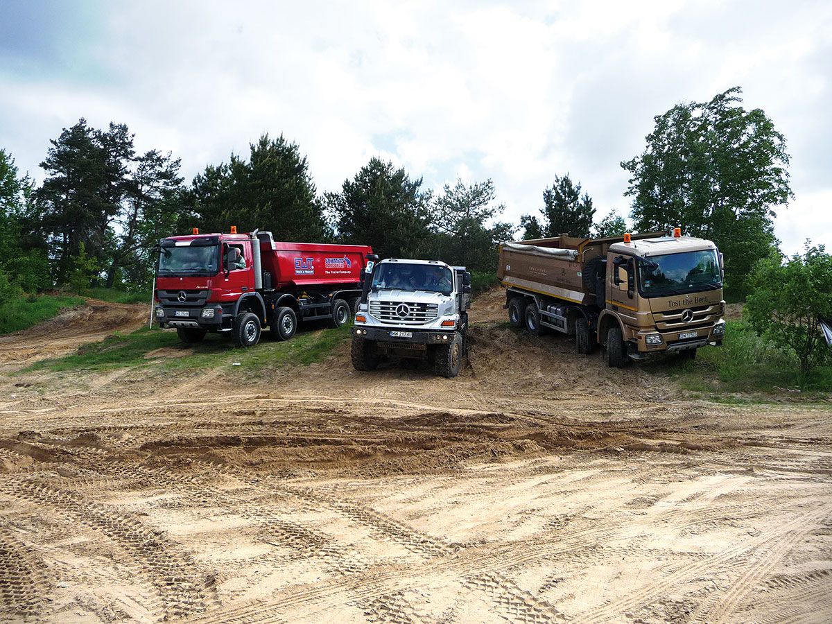 Do dyspozycji dziennikarzy, a później także klientów, było kilka odmian Actrosa z napędami 8x8, 8x6 i 8x4, Atego zabudowany wywrotką i żurawiem oraz Zetros 1833 A 4x4 i Unimog U 5000 Euro 4.
