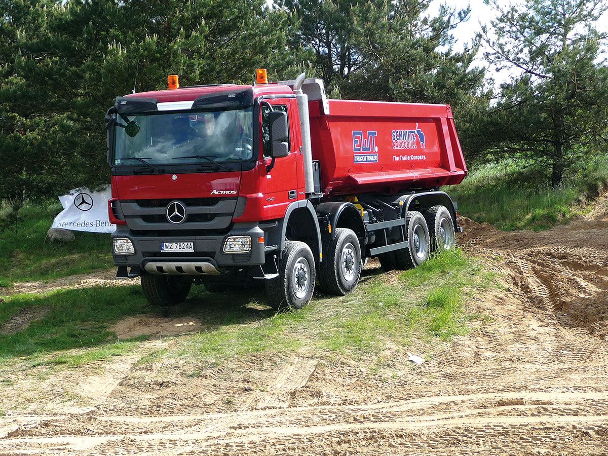 Actrosy prezentowały oszczędne, ale jednocześnie mocne, silniki BlueTec wraz z dostępnymi na zamówienie skrzyniami PowerShift offroad, przygotowanymi specjalnie pod kątem pracy w trudnym terenie, np. place budów. Na zamówienie są również silniki z normą Euro 5. Z wyposażenia dodatkowego warto wymienić stalowe kratki ochronne reflektorów i świateł z przodu i z tyłu, osłonę zbiornika paliwa od dołu oraz nowy, uchylny stopień wejściowy. Pomaga przy wsiadaniu i wysiadaniu, a jednocześnie nie przeszkadza podczas pracy w terenie. Jazdy testowe pokazały, że Actrosy w wersji budowlanej znakomicie pokonują pofałdowany teren poligonu. Mimo swoich rozmiarów, okazały się zwrotne i dość mocne, by pokonywać ostre podjazdy.