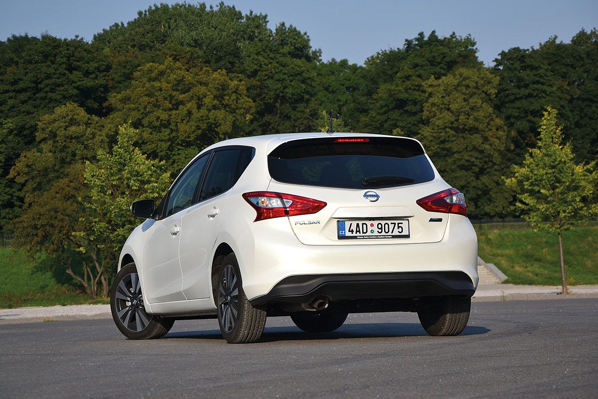 W konstrukcji zawieszenia wykorzystano proste i sprawdzone rozwiązania: kolumny MacPhersona z przodu i belkę skrętną z tyłu. Kompakt Nissana w zakresie komfortu jazdy oraz pewności i przyjemności prowadzenia jest rynkowym przeciętniakiem. W tym względzie reprezentuje poziom zbliżony do Hyundaia i30 lub Toyoty Auris, ale daleko mu do Volkswagena Golfa, Opla Astry czy Forda Focusa. Przydałoby się również nieco lepsze wygłuszenie jednostki silnikowej. W topowych wersjach kierowca może liczyć w Pulsarze na liczne systemy wspomagające i podnoszące bezpieczeństwo jazdy. I tak w menu mamy m.in. układ ostrzegający o pojazdach znajdujących się w martwym polu, system ostrzegający o niezamierzonej zmianie pasa ruchu czy układ elektrycznego hamulca awaryjnego, który to potrafi do zera wyhamować pojazd w razie niebezpieczeństwa zderzenia.