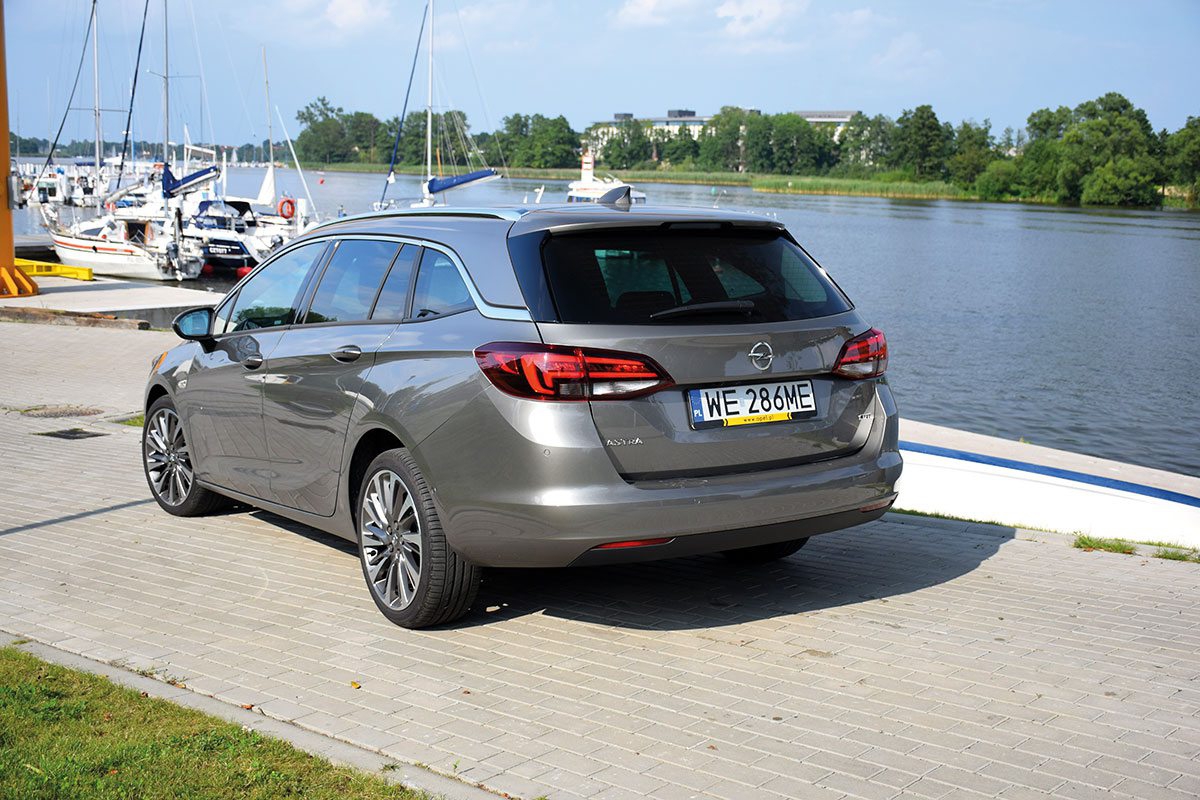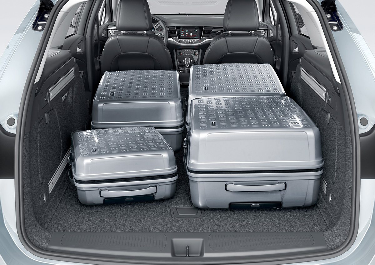Producentowi udało się wyraźnie powiększyć pojemność bagażnika w zestawieniu z poprzednią generacją Astry, która oferowała 500/1550 litrów. W obecnym modelu przy komplecie pasażerów mamy bagażnik o pojemności 540 litrów. Po opuszczeniu na płasko oparć kanapy powiększa się on do 1630 litrów. Na tle konkurentów Astra nadal jest średniakiem. Model ten odzyskuje przewagę w momencie, gdy oceniamy praktyczność bagażnika, np. opuszczania oparć dokonamy, pociągając dźwignie na bokach bagażnika, a roletę można schować pod podłogą w dedykowanym dla niej miejscu. Te rozwiązania wcale nie są standardem w kompaktowych kombi.