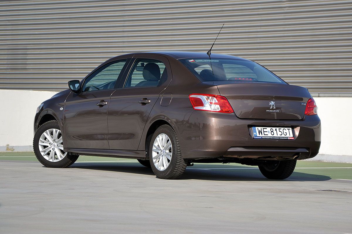 W zawieszeniu trzystajedynki zastosowano proste rozwiązania: kolumny McPhersona z przodu i belkę skrętną z wahaczami wleczonymi z tyłu. To z pewnością sprawdzi się na nie najlepszych drogach rynków docelowych, podobnie jak opcjonalna osłona silnika. Sedan Peugeota zaskakuje nieźle zestrojonym zawieszeniem, które sprężyście i dość komfortowo połyka nierówności nawierzchni, a przy tym pozwala na stabilne połykanie łuków drogi. Jazda byłaby jeszcze przyjemniejsza, gdyby układ kierowniczy był precyzyjny. Sedan Peugeota nie lubi szybkich podróży drogami ekspresowymi. Na piątym biegu przy 120 km/h jedziemy już z obrotami na poziomie 4 tys. obr./min. Biorąc pod uwagę, że sedan Peugeota jest słabo wyciszony, jazda z prędkościami autostradowymi staje się męcząca.