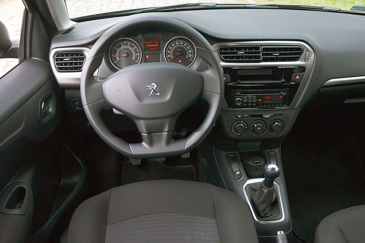 Peugeot 301 może nie porywa wyglądem, ale nie można mu zarzucić praktyczności. W kabinie nie brakuje miejsca nad głowami ani na nogi, ale zabraknie go nam na szerokość. Peugeot jest węższy od aut kompaktowych przeciętnie 5–8 cm. Fotele w tym samochodzie są miękkie i, jak na pojazd budżetowy, całkiem wygodne. Szkoda tylko, że tylne zagłówki (tylko dwa) mają formę wybrzuszenia z oparcia jak w autach z lat 80. Poza tym w drzwiach tylnych zabrakło miejsca na jakiekolwiek schowki.