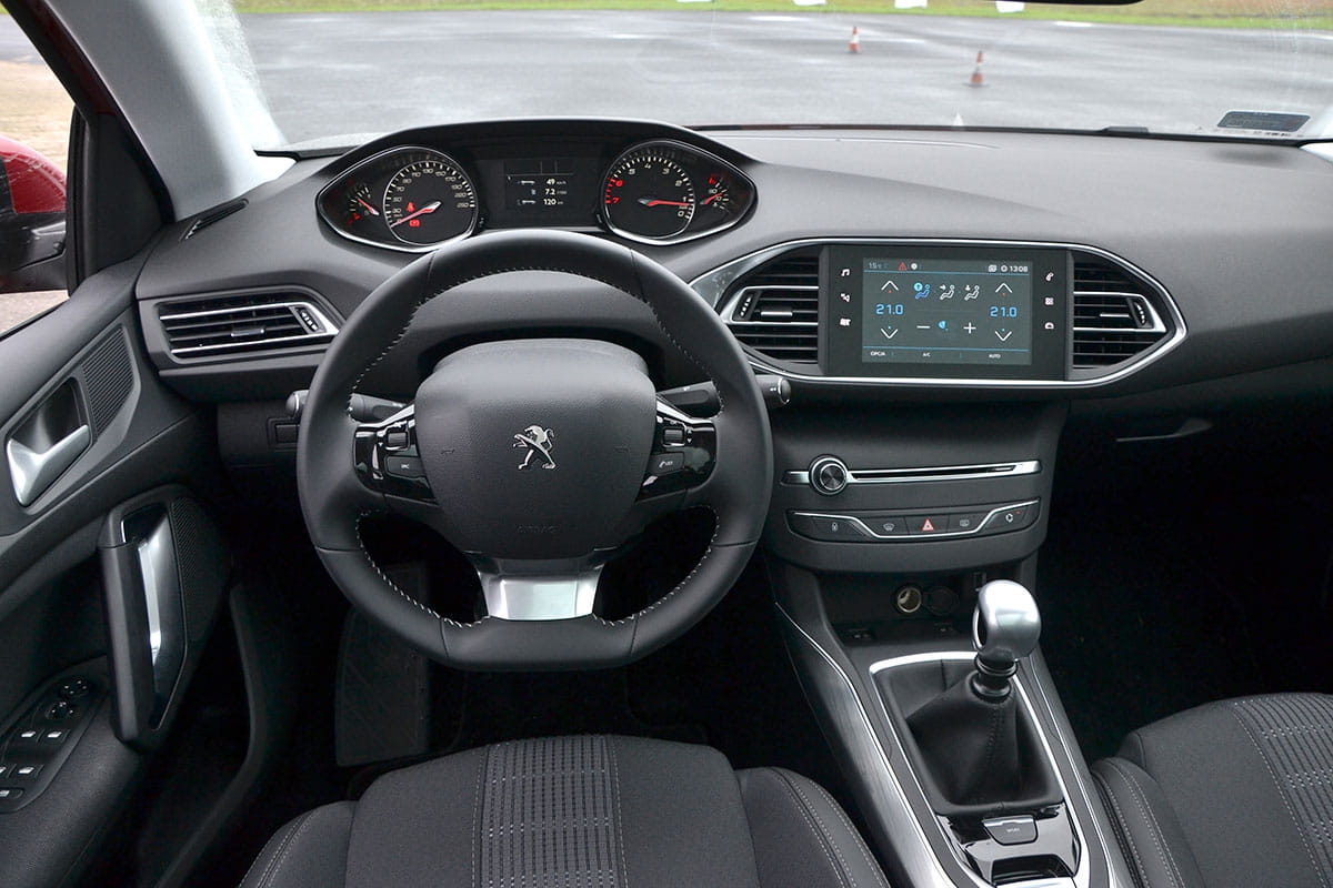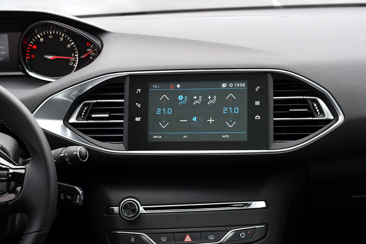 Przytulne wnętrze Peugeota, wykończone niezłej jakości materiałami, to mocny punkt francuskiego kompaktu. Nadal oryginalności dodaje mu i-Cockpit z niewielką kierownicą i zegarami odczytywanymi tuż nad jej wieńcem. W tych miarach nie zmieniono praktycznie nic. Pojawiły się za to nowe wzory tapicerek. Istotną nowością jest pojemnościowy ekran dotykowy z nawigacją Peugeot Connect NAV przygotowaną we współpracy z firmą TomTom. Nabywcy mogą śledzić informacje o ruchu drogowym w czasie rzeczywistym, pogodę online, ceny na najbliższych stacjach, czy też mogą być ostrzegani o tzw. strefach niebezpiecznych. Bezpłatna subskrypcja tych usług trwa trzy lata.
