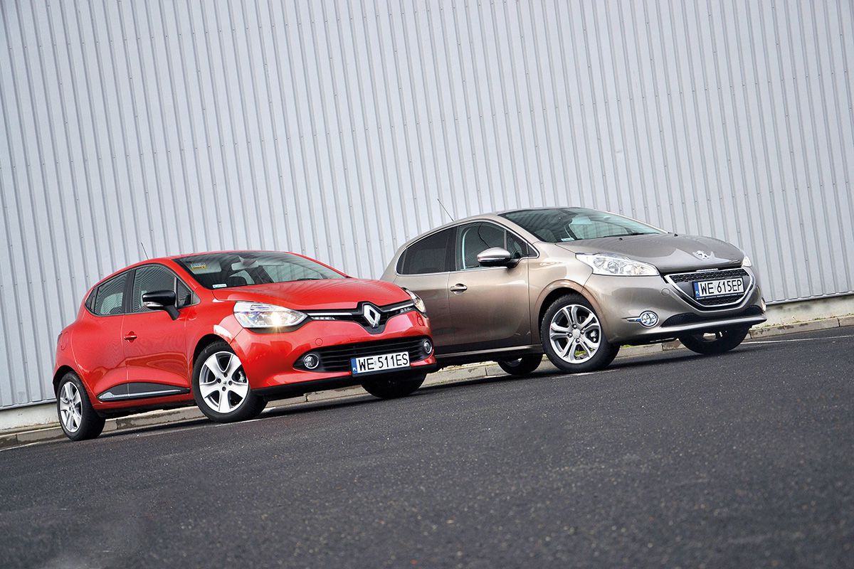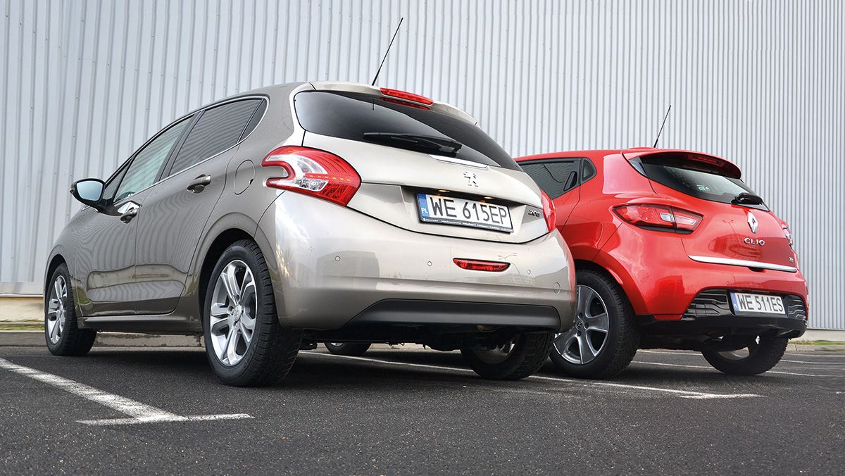 Niedawny rynkowy debiutant, turbodoładowany trzycylindrowy silnik Renault 0.9 TCe o mocy 90 KM pozytywnie zaskakuje. Motor ten osiąga maksymalny moment obrotowy 135 Nm przy 2500 obr./min i pozwala na bezproblemowe, płynne nabieranie obrotów, załączając turbinę w sposób niemal nieodczuwalny. Nowa jednostka Renault wpada w zdecydowanie mniejsze wibracje niż litrowe silniki PSA i Toyoty oraz mniejsze niż motor 1.2VTi zastosowany u konkurenta. Clio jest również wyraźnie cichsze od Peugeota. Przy prędkości ok. 110 km/h słychać przede wszystkim szum powietrza opływającego karoserię i opony, ale nadal nie silnik. Także trzycylindrowy silnik Peugeota – 1.2 VTi – jest niedawną rynkową nowością. Motor ten jest co prawda nieco słabszy niż jednostka Renault (82 KM) i oferuje niższy moment obrotowy osiągany przy wyższych obrotach (118 Nm przy 2750 obr./min), ale Peugeot jest samochodem ok. 100 kg lżejszym (975 kg) od Clio. W rezultacie osiągi obu aut są porównywalne, np. by rozpędzić się od zera do setki potrzebują tyle samo czasu: 12,2 sekundy. Szybszej jeździe Peugeotem towarzyszy wyraźnie bardziej warkotliwy niż w Renault dźwięk silnika i wymaga przy tym częstszego niż u rywala operowania lewarkiem zmiany biegów. Szkoda, że skrzynia biegów w modelu 208 jest mniej precyzyjna niż w Clio.