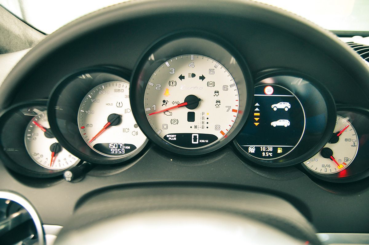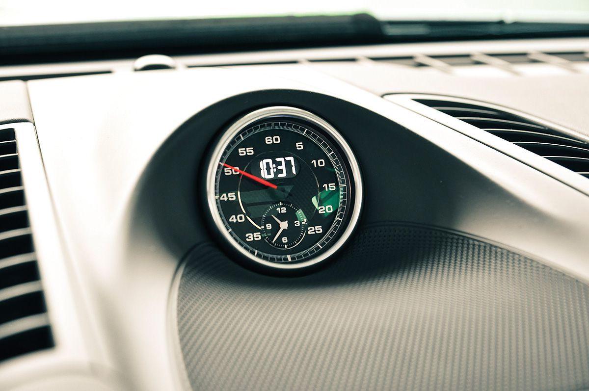 Fotele oczywiście idealnie łączą wygodę i komfort z ich podstawowym działaniem, czyli ergonomią. Dzięki możliwości kształtowania boków, każdy będzie się czuł pewnie przytwierdzony do tego samochodu. Kierownica poezja, a za nią coś, za co wielki plus. Klasyczne zegary. Dokładniej pięć zegarów w osobnych tubach. Centralnie umieszczony jest obrotomierz z białym cyferblatem. Nie do końca jestem przekonany tylko do tego, czy właściciel Porsche, jadąc za dnia, chce ciągle widzieć wszystkie ikonki, w tym tak znienawidzony check engine. Są one czarne i na białym tle są widoczne. Białe tarcze są opcją i można ich nie brać.