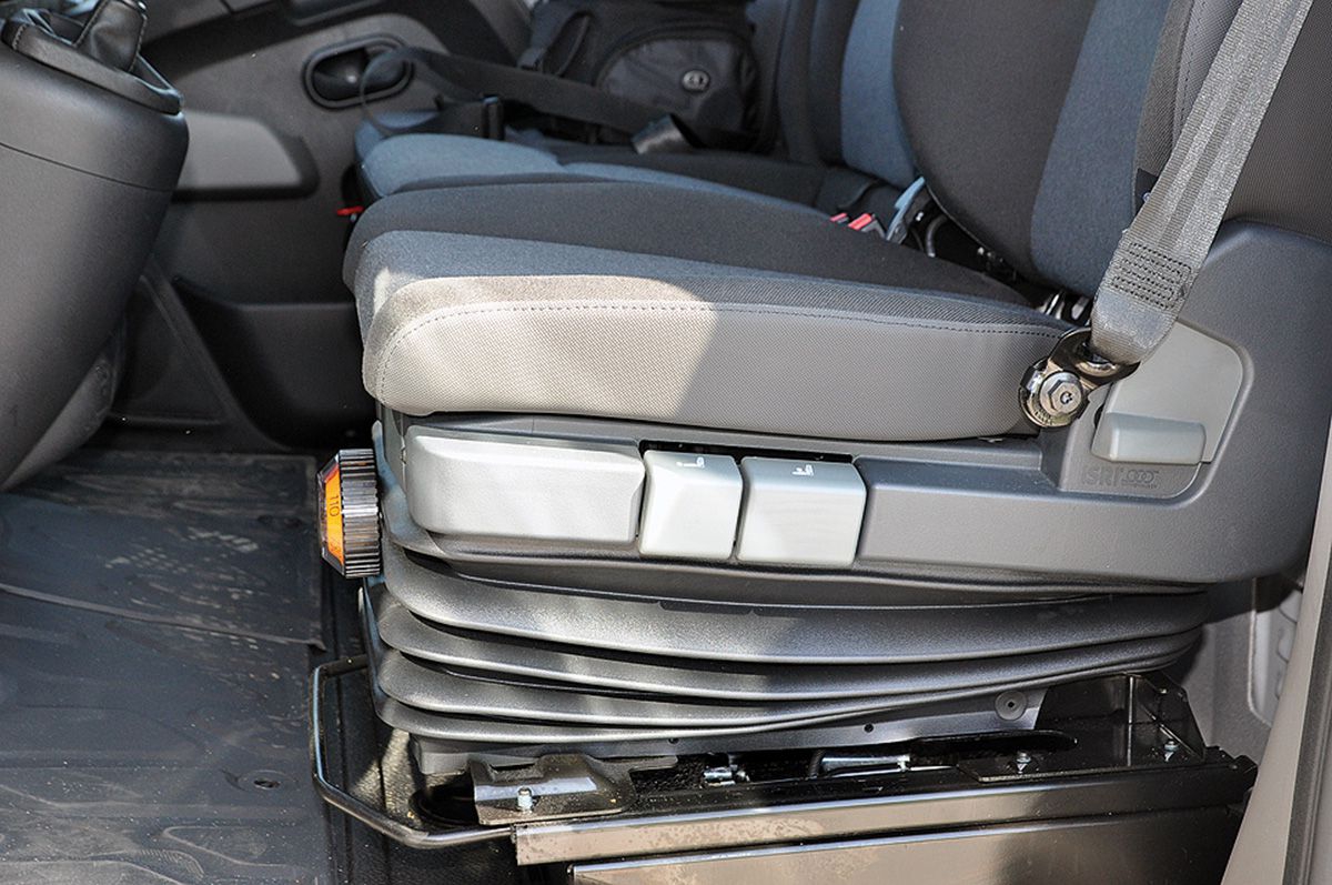 Zanim zasiadłem w kabinie, sprawdziłem jeszcze kąt otwarcia tylnych, symetrycznych drzwi. Wszystko w porządku i oczywiście z blokadą. Teraz czas wejść do kabiny, tego niemałego samochodu. Niemałego, ponieważ testowana wersja jest najdłuższa i prawie najwyższa. Kiedy tylko zasiadłem w pneumatycznie regulowanym fotelu, wysiadłem i wsiadłem znowu i tak kilkakrotnie. Sprawdziłem pokrętło pod fotelem kierowcy i ustawiałem sobie różne rodzaje tłumienia drgań. Nawet w samochodach osobowych nie jest tak wygodnie. Duże, położone niemal poziomo koło kierownicy. Sterowanie radiem tak jak w osobowych Renault. Zamiast lusterka wstecznego ekran nawigacji. Irracjonalne jest tylko sterowanie nim za pomocą pilota. Dużo fajniej by było, gdyby ekran nawigacji był dotykowy. Olbrzymie lusterka, także z opcją rybiego oka, zapewniają doskonałą widoczność. Rozglądam się po kokpicie. Dużo miejsca, ale miejsca rozsądnie zaaranżowanego. Schowek tu, schowek tam. Niezwykle przemyślana podkładka z uchwytem na dokumenty. Brawo.