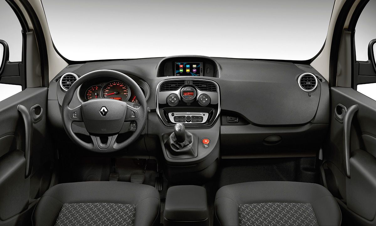 Odnowione Kangoo otrzymało nową deskę rozdzielczą, której wzornictwo i kolorystyka – czarna, by nie powstawały odblaski w szybie – przypomina rozwiązania stosowane w nowych modelach Renault: Clio i Captur. W konsoli środkowej umieszczono urządzenia sterowania nawiewem powietrza i klimatyzacją oraz radioodbiornik nowej generacji. Dostępny jest też system Renault R-Link skupiający w jednym miejscu funkcje multimedialne (radio, nawigacja, zestaw głośnomówiący Bluetooth i gniazdo do podłączenia przenośnych urządzeń audio) wyświetlane na ekranie dotykowym.