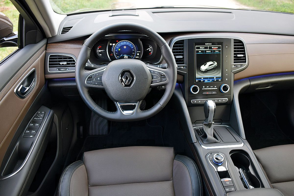 W Talismanie możemy cieszyć się naprawdę obszernym wnętrzem, w szczególności na szerokość – 151 cm z przodu i 146 cm z tyłu. Także wygoda foteli w topowej wersji Initiale Paris jest znakomita. W tym wariancie możemy liczyć m.in. na specjalne wykończenie kabiny, w tym obszycie skórą, oraz podgrzewane i wentylowane fotele przednie z możliwością regulacji 10 parametrów i z funkcją masażu. Deska rozdzielcza Talismana jest przejrzysta i nieprzeładowana przełącznikami. W przytulnie urządzonej kabinie uwagę zwraca pionowo ustawiony ekran dotykowy o przekątnej 8,7 cala z systemem R-Link. To prawdziwy multimedialny kombajn pozwalający na obsługę nawigacji, telefonu, aplikacji internetowych, streamingu audio czy zmianę parametrów samochodu. A działa on podobnie jak ekrany smartfonów. Możemy zatem przesuwać ekrany, a dwoma palcami powiększać lub zmniejszać obraz. Multimedialność pojazdu podkreślają cztery wejścia USB umieszczone (po dwa) z przodu i z tyłu. Mankamentem jest jakość tworzyw, z jakich wykonano dolną część środkowej konsoli (twardy i toporny plastik). Nie wszystkim będzie się podobał tradycyjny w Renault włącznik tempomatu i ogranicznika prędkości, umieszczony niepraktycznie na środkowej konsoli na wysokości łokcia. Za przestrzenią pasażerską znajdziemy jeszcze pakowny bagażnik o pojemności 515 litrów (+65 l w zestawieniu z Laguną III). Po złożeniu oparć kanapy przestrzeń powiększa się do 1022 litrów. Jeszcze praktyczniejszy wariant kombi Grandtour pojawi się w ofercie dopiero w pierwszych miesiącach 2016 roku.