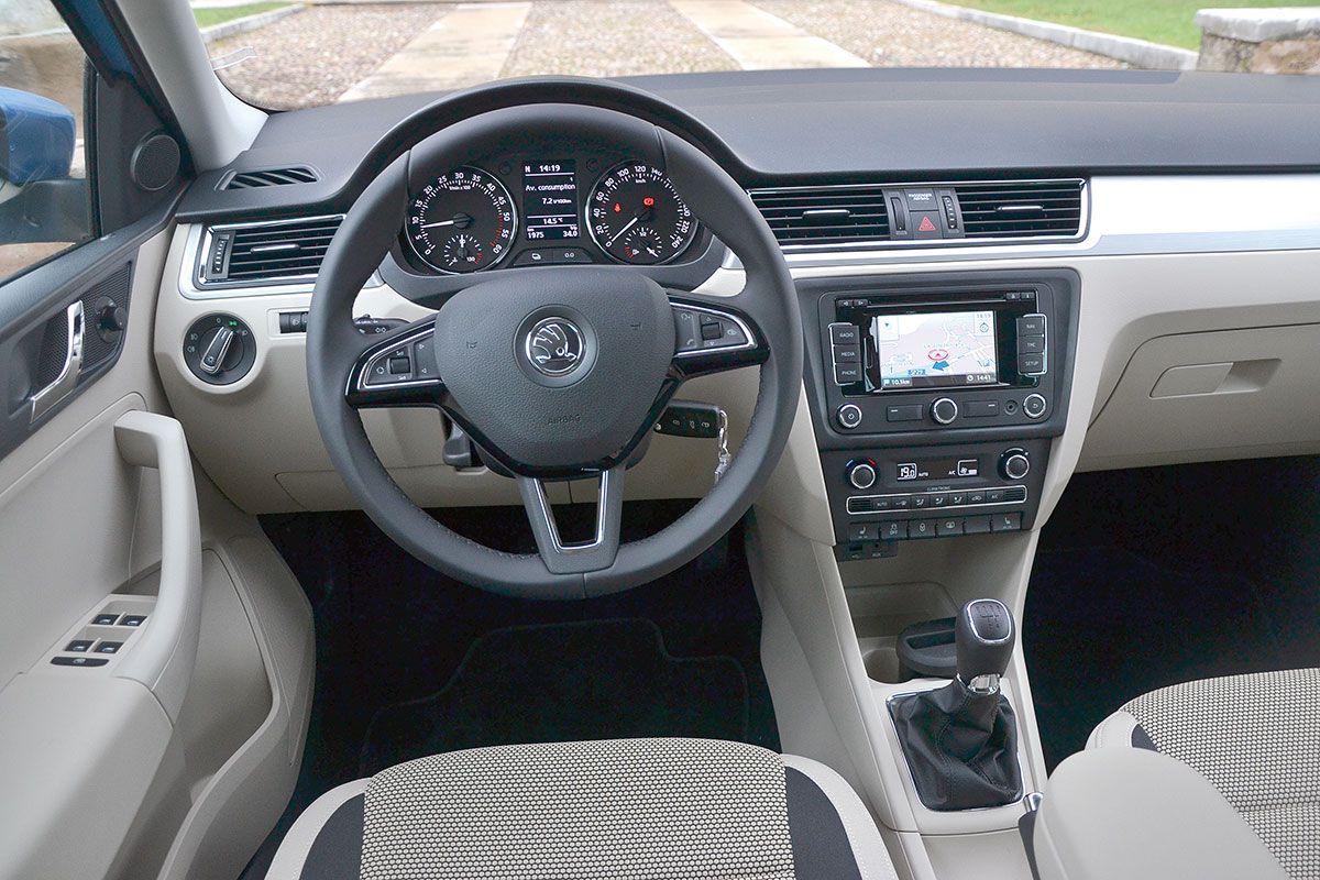 Wnętrze hatchbacka Škody jest identyczne jak w liftbacku. Ta sama, prosta i czytelna deska rozdzielcza i funkcjonalnie rozłożone elementy obsługi mogą się podobać. Rapid Spaceback może się pochwalić całkiem pojemnym bagażnikiem o pojemności 415 litrów. Jeśli złożymy oparcia tylnej kanapy, zyskamy kubaturę 1380 litrów, jednak powierzchnia bagażnika nie będzie płaska. Dla porównania, w Fordzie Focusie dysponujemy 363 i 1148 litrami bagażnika, a w Rapidzie liftback odpowiednio 550 i 1490 litrami. W dodatku nie uświadczymy podwójnej podłogi bagażnika nawet w opcji. Za to znalazły się w nim siatki do utrzymania drobnych przedmiotów, które możemy zamontować na tylnej ścianie oparcia, podłodze i na bokach nadwozia. W porównaniu z wersją liftback, przedział ładunkowy jest bardziej przestrzenny, z racji dalej opadającej linii dachu. W związku z tym zmieścimy w tym modelu np. wyższą lodówkę czy inny sprzęt AGD. Podobnie jak w innych modelach Škody, zadbano o praktyczne dodatki. W Spacebacku również znajdziemy skrobaczkę pod klapką wlewu paliwa.