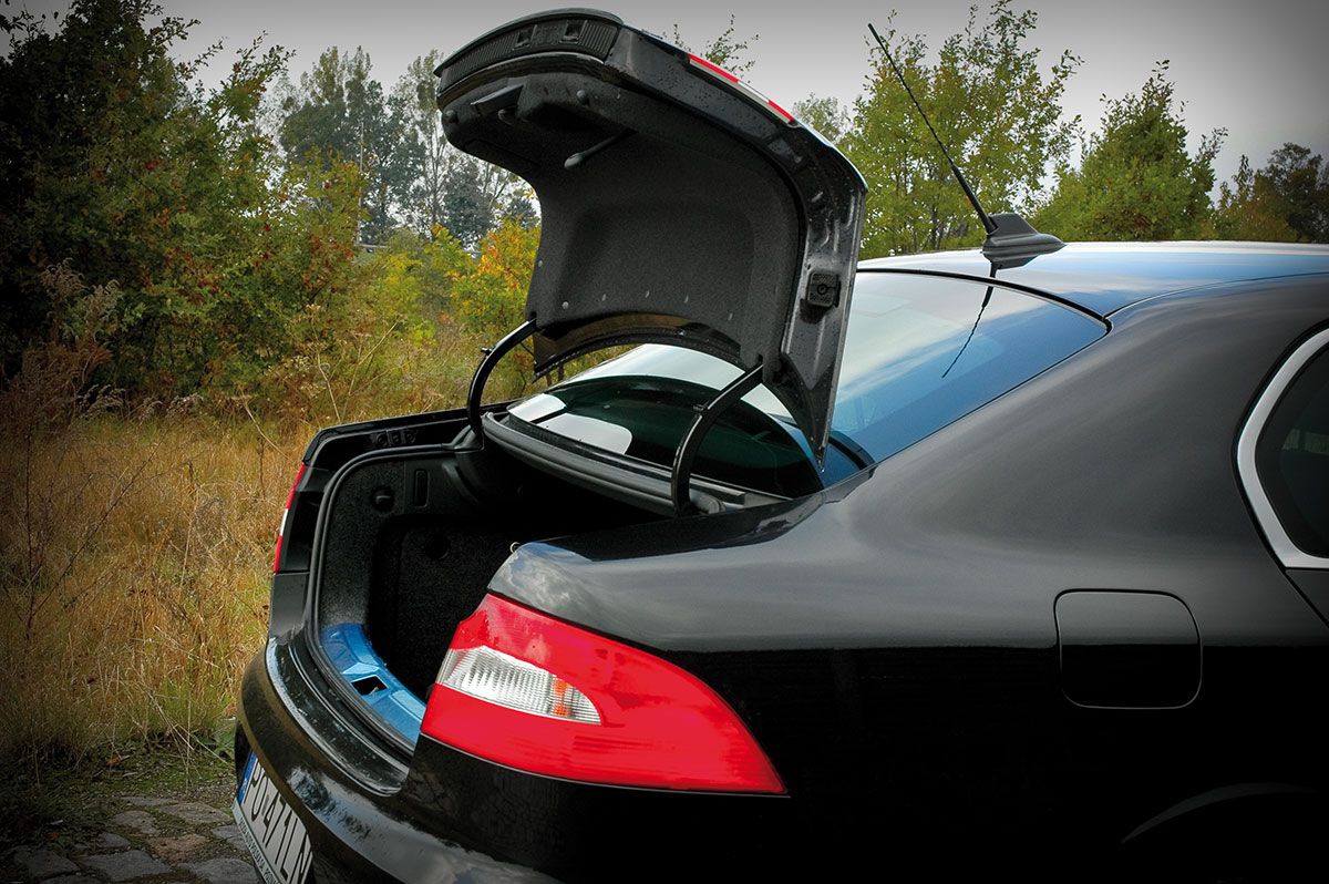 Praw fizyki się nie oszuka, ale jednak się udało. Normalne samochody mogą mieć duże bagażniki, ale nie mają miejsca we wnętrzu. Druga kategoria normalności zakłada, że jest miejsce we wnętrzu, ale nie ma bagażnika. A jak się ma pierścień Arabelli, to można wyczarować samochód, który ma ogromną ilość miejsca zarówno z tyłu, jak i w bagażniku. 565 l to zdecydowanie więcej niż wystarczająco, a jeżeli Superba chcemy wykorzystywać do działalności przestępczej i wozić w nim zwłoki, to załadunek ułatwi system otwierania drzwi Twin Door.