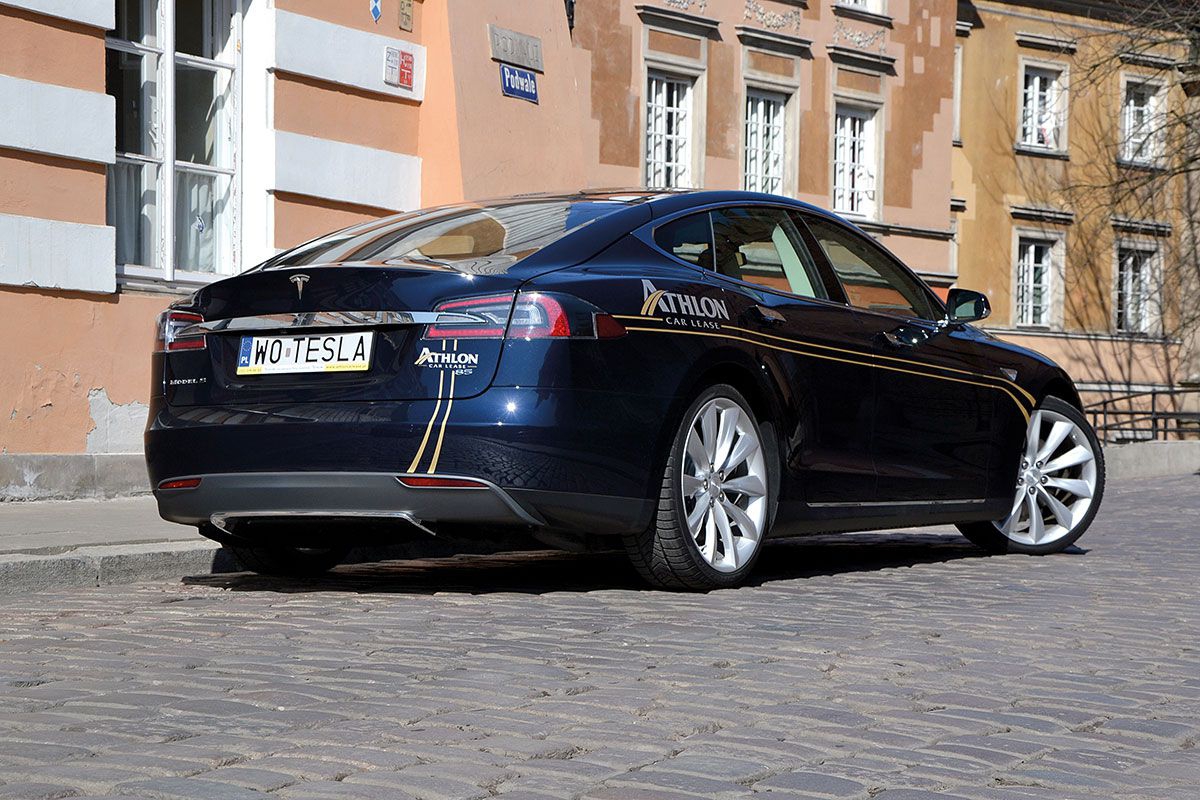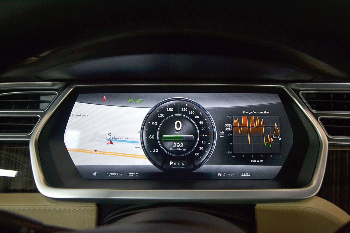 Tesla oferuje model S w trzech wersjach różniących się zasięgiem, osiągami i masą akumulatorów. Już podstawowa wersja S60 z najmniejszymi akumulatorami o pojemności 60 kWh pozostawia europejską konkurencję daleko w tyle w zakresie możliwego zasięgu. Według producenta, może on wynieść nawet 390 km. W znacznie mniejszym Nissanie Leaf akumulatory o pojemności 24 kWh wystarczają na przejechanie ok. 160 km. Podstawowy wariant S60 ma moc 306 KM (440 Nm) i do setki przyśpiesza w 6,2 sekundy. W S85 z jednostką o mocy 367 KM (440 Nm), sprint do setki odbywa się w czasie 5,6 sekundy. Dzięki większym o 25 kWh akumulatorom wzrasta również jej zasięg do 502 km. Najlepsze osiągi zapewnia wersja S85 Performance, która ma moc 412 KM (600 Nm) i przyśpiesza od 0 do 100 km/h w 4,4 sekundy. Taki wynik robi piorunujące wrażenie, biorąc pod uwagę rozmiary pojazdu oraz to, że przyspieszaniu nie towarzyszy wycie silnika. W dodatku przyspieszanie przy dużych prędkościach jest bardzo łatwe. Przy 120 km/h mocne wdepnięcie pedału gazu wyrywa auto do przodu wciskając pasażerów w fotele. O taki efekt w autach spalinowych jest naprawdę trudno. Sama prędkość maksymalna, jak to w pojazdach elektrycznych, nie jest wygórowana i wynosi 210 km/h w najmocniejszej wersji. Cudów jednak nie ma, dynamiczna jazda, pełna mocnych przyśpieszeń i gwałtownych hamowań, skraca zasięg Tesli S85 do ok. 135 km. To i tak rewelacyjny wynik jak na współczesny pojazd elektryczny. Amerykanom udało się dobrze zestroić pneumatyczne zawieszenie pojazdu, dzięki czemu pojazd prowadzi się bardzo pewnie, a przy okazji oferuje przyzwoity komfort jazdy i tłumienia nierówności. Podobnie nie mamy uwag do pracy układu kierowniczego, który okazuje się dość precyzyjny, choć nie tak jak w MINI czy modelach BMW. Zachowaniu stabilności w czasie jazdy sprzyja rozłożenie baterii płasko w podłodze przez niemal całą długość samochodu. W dodatku Tesla może się pochwalić prawie wzorcowym rozkładem masy na obie osie. W polskich realiach niekiedy może się przydać rozsądny prześwit – 15 cm.