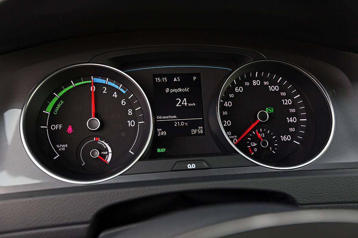 Prędkość maksymalna ograniczona do 140 km/h wystarczy z nawiązką. Jednak przyspieszenie do 60 km/h wynoszące 4,2 sekundy robi, nomen omen, piorunujące wrażenie. Wszystko za sprawą tego, że moment obrotowy dostępny jest od samego początku. Rewelacyjne odczucie. Aplikacja Volkswagen Car-Net-e-Remote pozwala uruchomić przy użyciu smartfonu ładowanie baterii, seryjne ogrzewanie i wentylację postojową (podczas ładowania) lub sprawdzić informacje dotyczące samochodu. Także bardzo ciekawa funkcja, szczególnie dla osób lubiących nowoczesne technologie. Dla zmniejszenia poboru energii wszystkie światła w samochodzie wykonane są w technologii LED. Moc jednostki to tylko 115 KM, szczególnie przy masie 1500 kg, ale za to prędkość obrotowa robi wrażenie – 12 tysięcy obr./min i pamiętajmy że skrzynia ma tylko jeden bieg w przód. System rekuperacji jest rozwiązany podobnie jak w mniejszym e-Up! Natomiast aby naładować Golfa pod korek z klasycznego gniazdka, potrzeba około 13 godzin. Sporo.