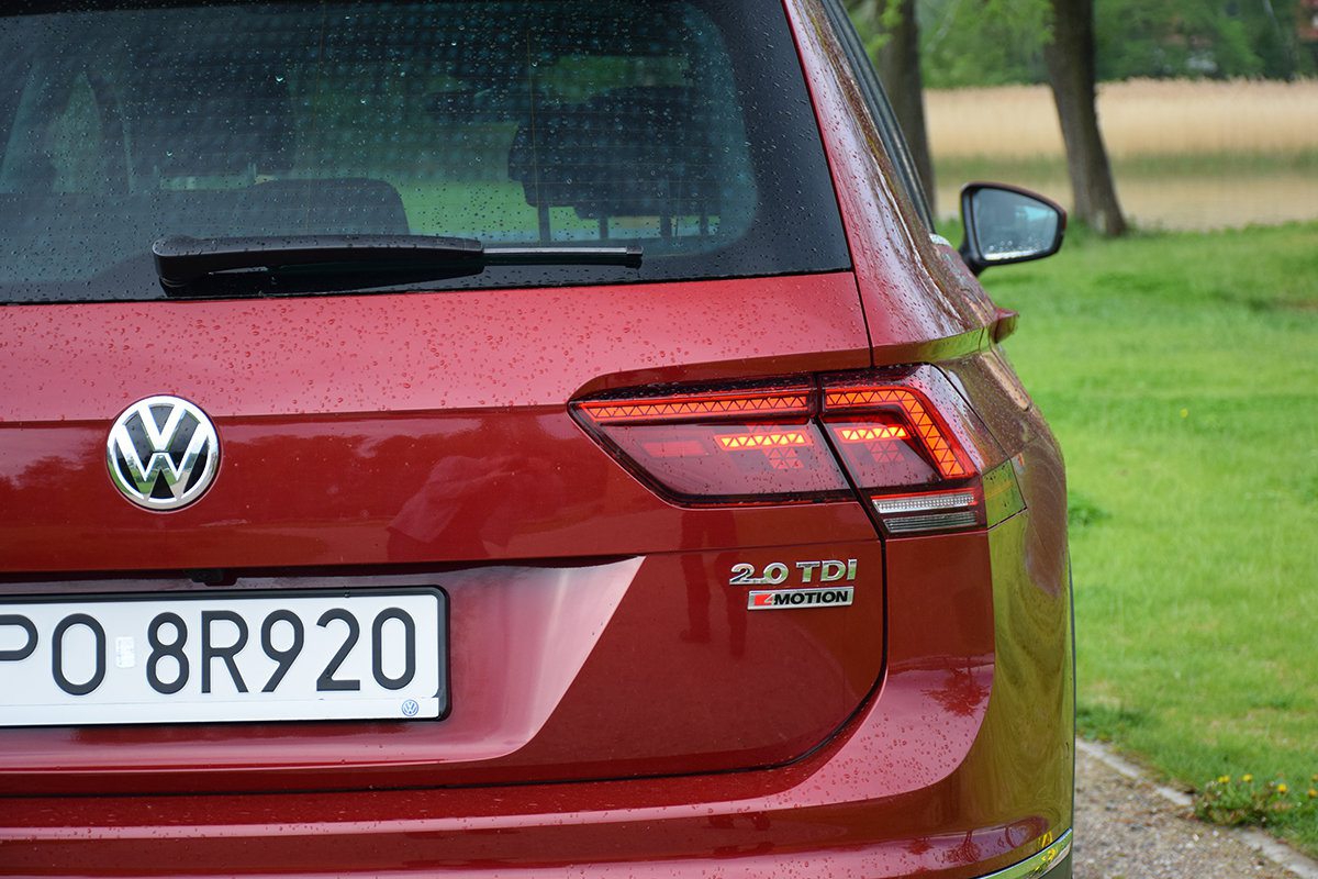 Niemiecki SUV prowadzi się bardzo stabilnie w zakrętach, mimo względnie wysokiego nadwozia, układ kierowniczy cechuje się wysoką precyzją, a kolejne nierówności przejedziemy całkiem komfortowo. Opcjonalnie możemy zamówić adaptacyjny system regulacji zawieszenia (DCC). Dzięki elektronicznemu sterowaniu pracą amortyzatorów, Tiguan nieustannie dostosowuje twardość zawieszenia do jakości nawierzchni i parametrów jazdy. W tym SUV-ie zastosowano elektroniczną blokadę mechanizmu różnicowego XDS+, która dodatkowo stabilizuje pojazd w czasie jazdy w zakrętach, optymalnie rozdzielając moment obrotowy na każde z kół. Orientację w otoczeniu ułatwi nam Area View, dzięki któremu na ekranie systemu multimedialnego możemy obserwować obrazy z kamer na samochodzie i rzut z góry na naszego Tiguana. Niezależnie od tego rozwiązania czuwa asystent wyjazdu z miejsca parkingowego. Wyjeżdżając tyłem z miejsca postoju, system monitoruje obszar za pojazdem oraz po jego bokach. Gdy pojawi się w tym obszarze samochód lub osoba, system nas o tym ostrzeże, a następnie może automatycznie rozpocząć hamowanie.