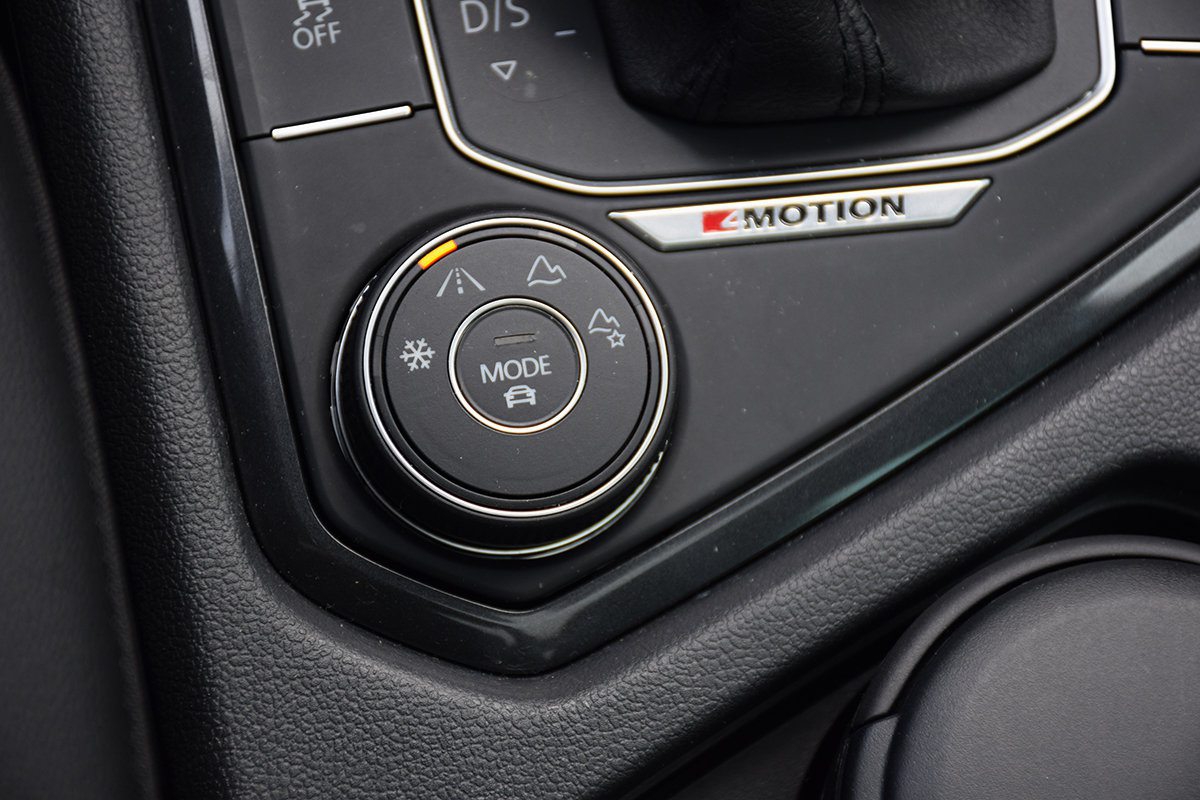 W wersji z napędem na cztery koła 4Motion przy niewielkim obciążeniu napędzana jest przednia oś Tiguana, co wpływa na obniżenie zużycia paliwa. Gdy tylko pojawi się ryzyko utraty przyczepności tylna oś jest dołączana przez sprzęgło Haldex piątej generacji. W Tiguanie debiutuje opracowany dla modeli SUV układ 4Motion Active Control. Specjalnym pokrętłem na konsoli między fotelami możemy wybrać jeden z czterech profili jazdy, które wpływają na charakterystykę pracy układu napędowego, działanie ESP oraz siłę tłumienia amortyzatorów. Do wyboru mamy tryby jazdy Comfort, Sport, Eco lub Individual. Po wybraniu trybu Offroad możemy wybrać profile Snow, Normal, Offroad lub Offroad Individual. W tym ostatnim parametry jazdy możemy ustawić samemu. Użyteczne mogą się okazać systemy wspomagające wjazd i zjazd ze wzniesienia.