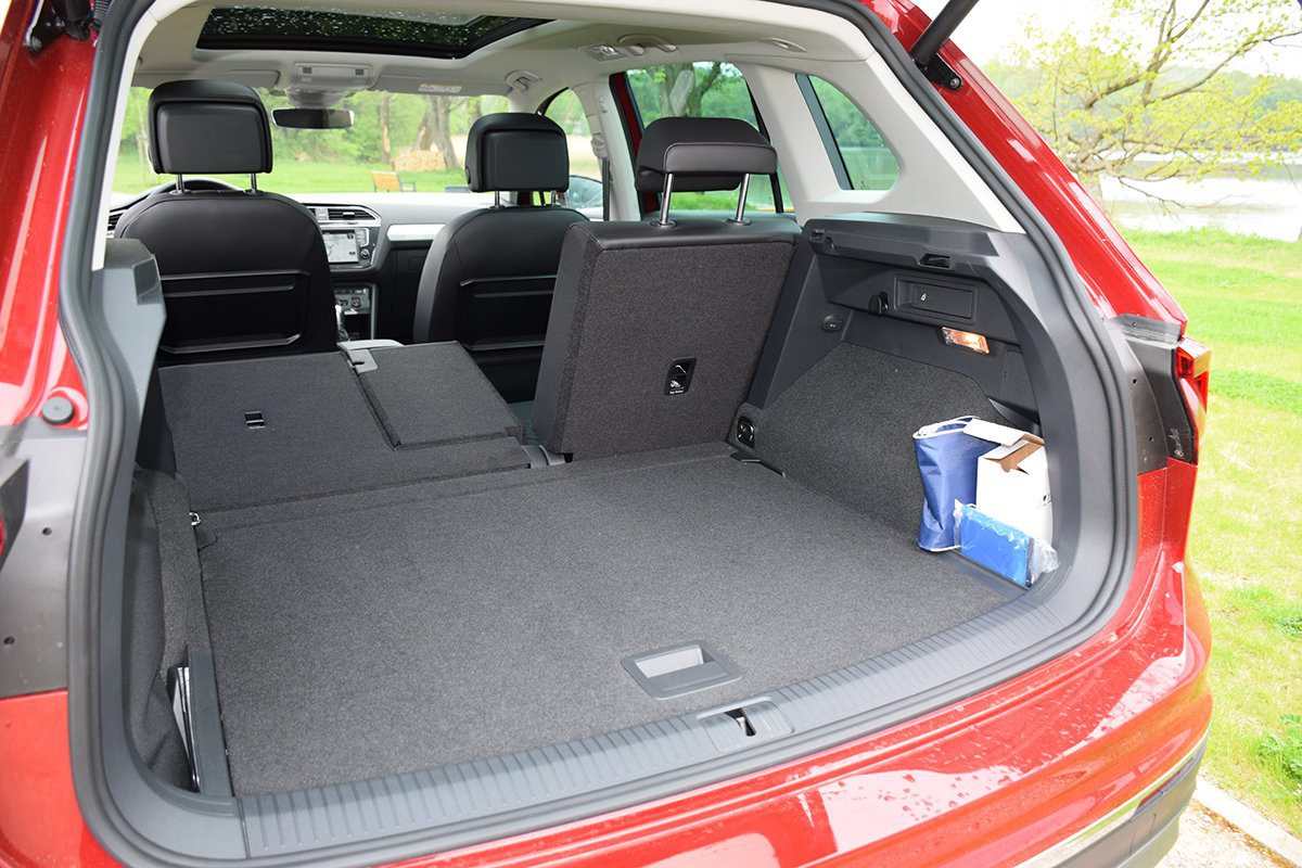 Pod względem funkcjonalności kabina Tiguana bliższa jest minivanom niż klasycznym samochodom SUV. Nie chodzi tu o jej przestronność (choć i ta jest przyzwoita), ale o szereg rozwiązań niespotykanych raczej w samochodach terenowo-rekreacyjnych, np. obecność składanych stolików w oparciach przednich foteli, możliwości przesuwania tylnej kanapy dzielonej w proporcjach 40/20/40 oraz możliwości zmiany kąta pochylenia oparć w tej kanapie. Dwa ostatnie rozwiązania są w Tiguanie standardem. Nie brakuje tu również rozmaitych schowków. Pomyślano także o szufladach pod przednimi fotelami. Do dyspozycji pasażerów jest również pokaźny bagażnik o pojemności 615 l (+145 l w zestawieniu z poprzednikiem). Po złożeniu oparć tylnej kanapy uzyskamy płaską powierzchnię podłogi i bagażnik o pojemności 1655 l. Uniwersalność Tiguana jeszcze wzrasta w momencie złożenia na płasko fotela pasażera z przodu. Przed ubrudzeniem bagażnika mogą nas ochronić opcjonalne gumowe maty lub wanna z tworzywa odporna na działanie kwasów. Tiguan może holować przyczepę hamowaną o masie 2500 kg. W manewrach z przyczepą kierowcę może wspomóc asystent jazdy Trailer Assist, dzięki któremu samochód może sam sprawnie wycofać i zaparkować. System działa również w czasie jazdy, zapobiegając niestabilności przyczepy.