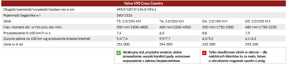 Dotychczasowy model Volvo Cross Country sprzedawał się trzykrotnie lepiej niż najbliższy konkurent, czyli Audi A6 Allroad. Wynikało to nie tylko z nieco niższych cen, ale też lepszych możliwości offroadowych szwedzkiego modelu i bogatszego wyposażenia standardowego. Nowość ma szansę tę przewagę powiększyć. Model Cross Country to niezwykle dopracowany i dojrzały samochód segmentu premium, który w naszym odczuciu oferuje więcej niż niejeden SUV.