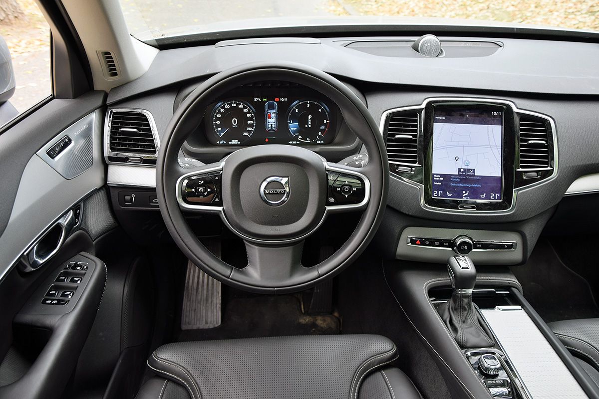 W segmencie topowych SUV-ów nie można sobie pozwolić na jakiekolwiek wpadki w zakresie jakości montażu oraz użytych materiałów. Szwedzki model naturalnie jest ich pozbawiony. Wnętrze ma przyjemne dla oka, surowe i eleganckie kształty. Duża w tym zasługa okrojenia do minimum deski rozdzielczej z przycisków i pokręteł. Na środkowej konsoli dominuje ustawiony pionowo wyświetlacz dotykowy systemu multimedialnego. To poprzez niego możemy nie tylko śledzić wskazówki nawigacji, ale też sterować systemem audio, klimatyzacją czy ustawieniami jazdy samochodu. Liczba obsługiwanych funkcji jest niezwykle rozbudowana i trzeba poświęcić naprawdę dużo czasu, aby wszystkie funkcjonalności znaleźć i nauczyć się ich lokalizacji. To poprzez ekran dotykowy kierowca może np. zmienić siłę tłumienia zawieszenia czy wspomagania kierownicy. Ekrany możemy zmieniać, przesuwając je jednym ruchem ręki w prawo lub w lewo, podobnie jak w smartfonach. I tak jak w nich ekran ten, niestety, szybko się kurzy i palcuje, co nie wygląda estetycznie w słońcu. Poza tym na desce rozdzielczej nie znajdziemy przycisku zamykania obiegu powietrza. Jest on ukryty w menu systemu klimatyzacji w ekranie dotykowym. Przycisk ten nie jest tak bardzo potrzebny ze względu na obecność systemu monitorującego jakość powietrza wpadającego do kabiny. Gdy tylko czujnik wykryje nadmiar szkodliwych substancji na ulicy, automatycznie zamknie obieg powietrza. Niestety, system robi to z opóźnieniem, a więc niekiedy pierwszy strzał szkodliwych spalin z auta przed nami ląduje w kabinie Volvo.