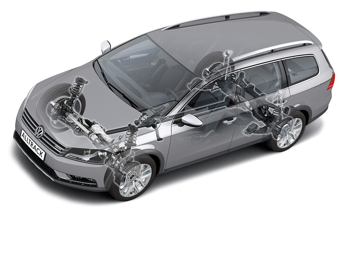 Użyty tu napęd 4Motion korzysta już z 4. generacji urządzenia Haldex. Rozwiązanie to zdolne jest dołączyć napęd tylnych kół nawet przed ruszeniem auta, gdyż siłownik wykonującego tę funkcję sprzęgła ma niezależną ciśnieniową pompę elektryczną i akumulator ciśnienia. W Passacie Alltrack nie zastosowano jednak przełącznika blokady napędu 4x4, jaki znamy z Tiguana. Nie umieszczono też w mechanizmie Haldex sprzęgła blokującego mechanizm różnicowy tylnej osi. Tę funkcję powierzono blokadzie elektronicznej o nazwie XDS, czyli wykorzystującej w tym celu hamulce i ABS/ESP obu osi. Działanie XDS umożliwia także wprowadzenie funkcji znanej jako torque vectoring (dynamiczne ułatwienie wykonywania zakrętów).