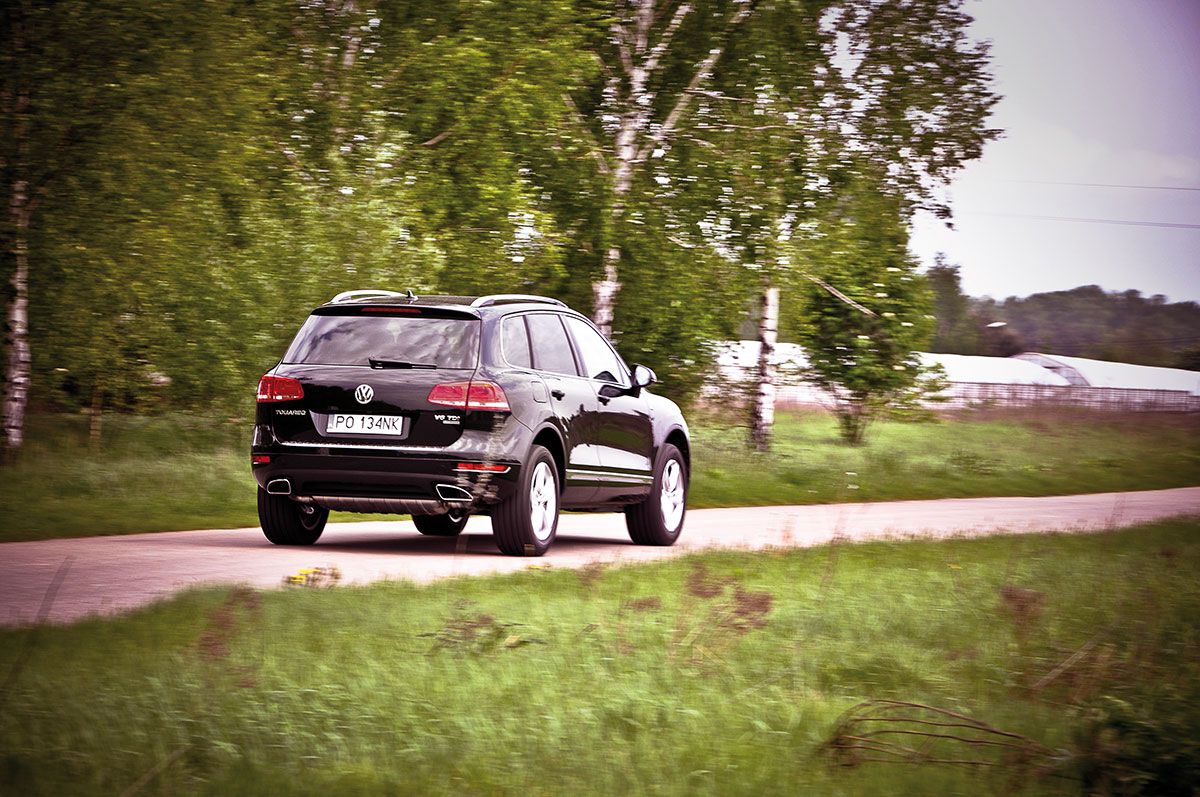 Wiecie, jak ocenić, czy samochód jest fajny? Kiedy siedzimy w domu zmęczeni i nagle stwierdzamy, że podjedziemy do sklepu po..., obojętnie po co, ale podjedziemy. To znaczy, że samochód jest fajny. Bo nieważne, po co podjedziemy, ważne, że droga da nam frajdę. Jechać Touaregiem po cokolwiek to olbrzymia frajda. Doskonale zestrojone zawieszenie, bardzo zwarta sylwetka i niezbyt pretensjonalny znaczek na masce. A jeżeli do sklepu zapragniemy jechać przez las, to też można. Samochód da radę, jeżeli tylko radę da kierowca.