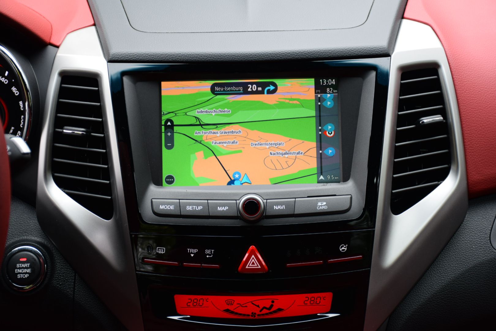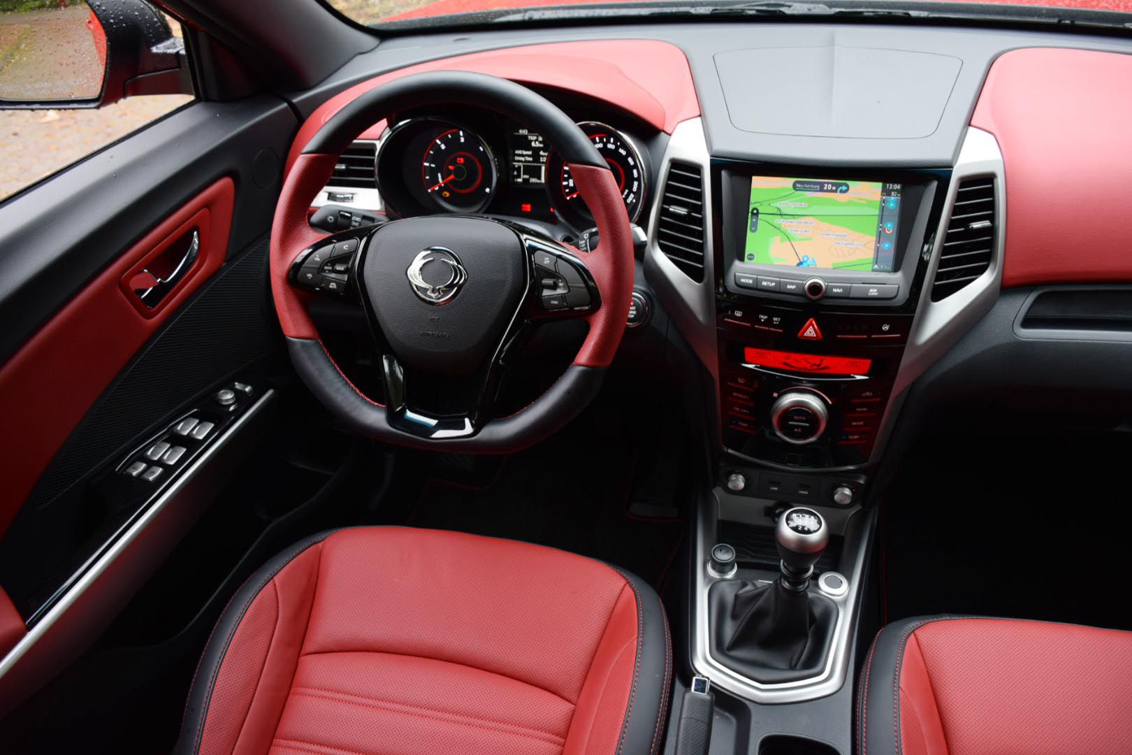 Tivoli w zestawieniu z innymi modelami SsangYonga oferuje wyższą jakość zastosowanych materiałów, a na desce rozdzielczej znajdziemy też miękkie i przyjemne w dotyku tworzywa. Jakość wykończenia nie jest co prawda na poziomie jaki znamy np. z Kii Soul, ale Tivoli góruje w tym względzie m.in. nad Suzuki Vitarą. Na zamówienie dostępna jest wersja z wykończonym na czerwono wnętrzem, z obszytymi czerwoną skórą siedzeniami i kierownicą oraz wstawkami w tym samym kolorze na desce rozdzielczej i drzwiach.