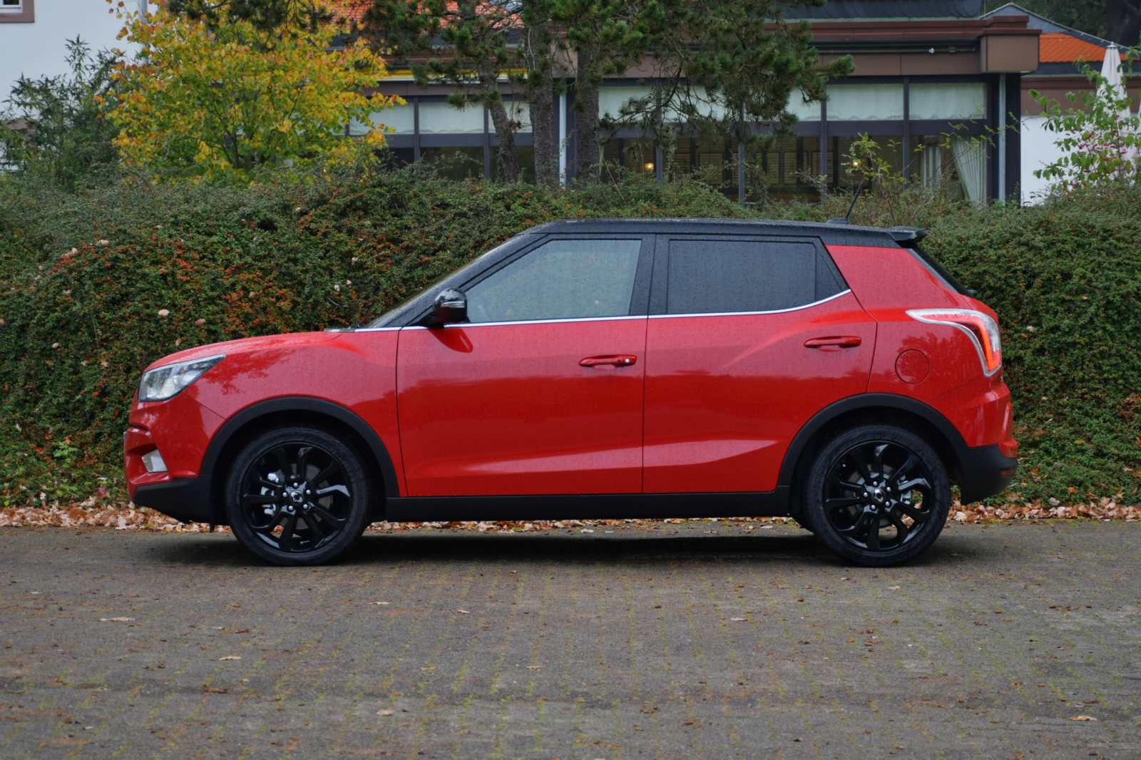 ssangyong_tivoli-awd (4)O chęci przypodobania się europejskim nabywcom świadczy nazwa małego SsangYonga. Pochodzi ona od włoskiej miejscowości Tivoli niedaleko Rzymu, która przez długi czas była popularnym miejscem wypoczynku bogatych Włochów. Tivoli ma długość 419,5 cm, szerokość 180 cm i wysokość 159 cm. Rozstaw osi w tym modelu sięga 260 cm, a prześwit - 16,7 cm. To nie za wiele. Koreańska nowość wygląda oryginalnie, ale nie dziwacznie jak wiele dotychczasowych modeli SsangYonga. Nadwozie Tivoli ma bardziej zadziorne kształty niż większość rywali. Uwagę przykuwają np. charakterystyczne reflektory w kształcie odwróconego rombu, ograniczony do minimum grill na masce, masywne nadkola tylnych kół czy małe okna boczne, dzięki którym pojazd wygląda na większego niż jest w istocie. Aby przyciągnąć uwagę młodszej klienteli SsangYong zadbał o większe możliwości personalizacji. Możemy np. zamówić wersję z kontrastowym malowaniem dachu w stosunku do koloru reszty nadwozia. Szkoda tylko, że na taki egzemplarz trzeba po zamówieniu dłużej poczekać.
