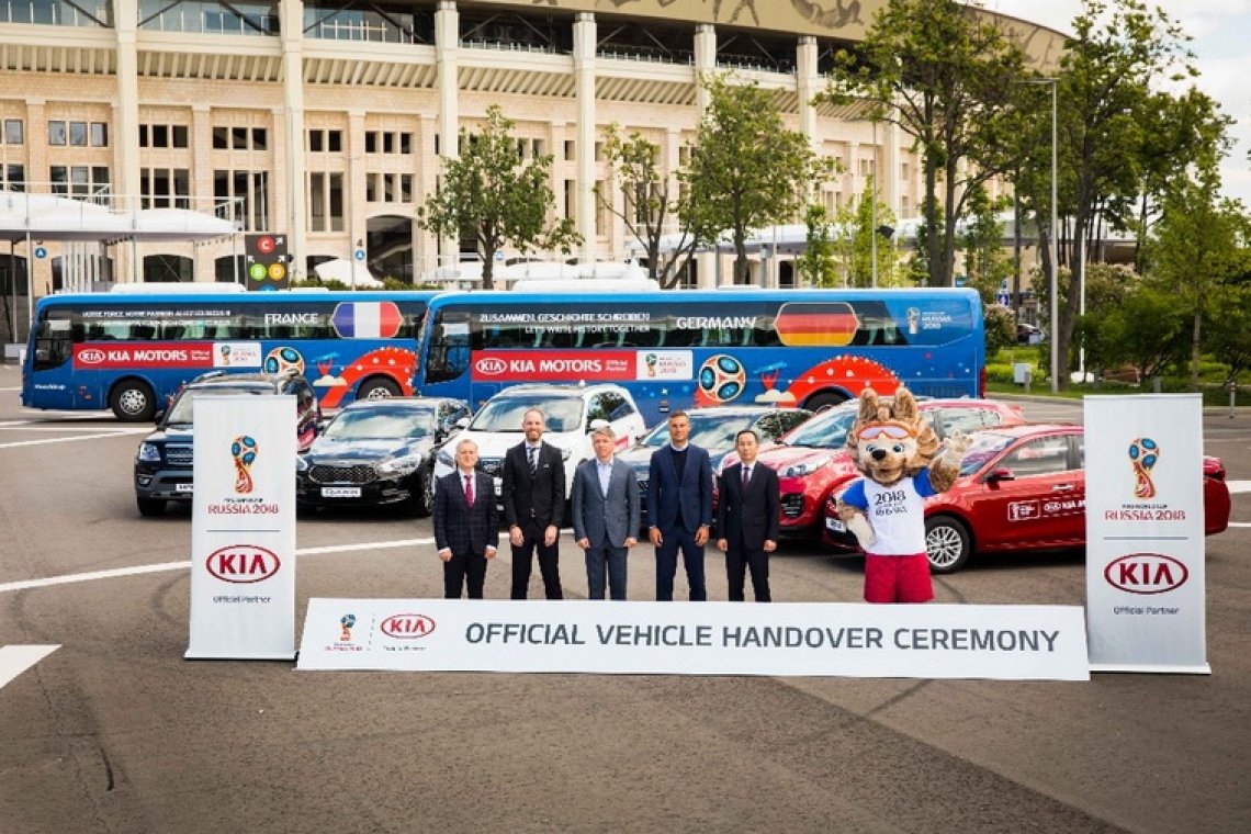 Jako oficjalny partner FIFA Kia udostępniła flotę samochodów, która składa się z luksusowych sedanów K9, dużych i kompaktowych SUV-ów – Sorento i Sportage oraz z nowego Ceeda w wersji hatchback. Tymi samochodami będą wożeni nie tylko piłkarze i sędziowie, ale również urzędnicy i delegaci podczas wszystkich 64 spotkań. W ceremonii przekazania aut uczestniczyli: Jay Neuhaus – szef ds. marketingu i obsługi w FIFA, Eduardo Solis – dyrektor ds. współpracy i promocji w FIFA, Alexey Sorokin – przewodniczący i dyrektor generalny lokalnego komitetu organizacyjnego FIFA i legenda piłki nożnej Nemanja Vidic – reprezentant Serbii oraz były gracz Manchesteru United i Spartaka Moskwa.